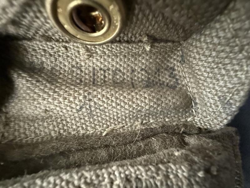 A nice set consisting of a 1937 Pattern webbing Pistol holster and ammunition pouch and brace adjuster. The webbing holster is 1942 dated and marked MeCo. The compass pouch is clearly 1943 dated. The brace adjuster is 1941 dated and marked with Broad Arrow. IMO in unissued condition, hard to upgrade!