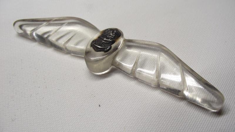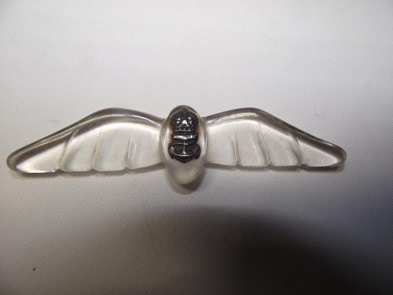 This example measures around the same size as a full set of breast cloth wings as used on RAF uniform. Condition is very nice, back fastening pin missing.