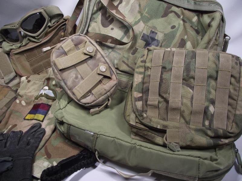 This is mainly bags as used for medical kit and recently purchased from an ex member of the 144 PFA. With this you also get his 144 MTP shirt, finger cut gloves and goggles. Please check the photos for more details folks, all fits into his medical side pouch and sent as such. Please do not expect mint items as all have been field used but not abused!