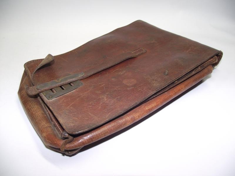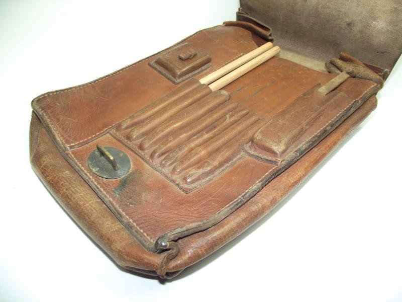 Very nice early brown map case that is in very nice condition with unit stamps and a clear rank and name to the owner to the inside. Found inside are two pencils and a rubber, you will get these as well.