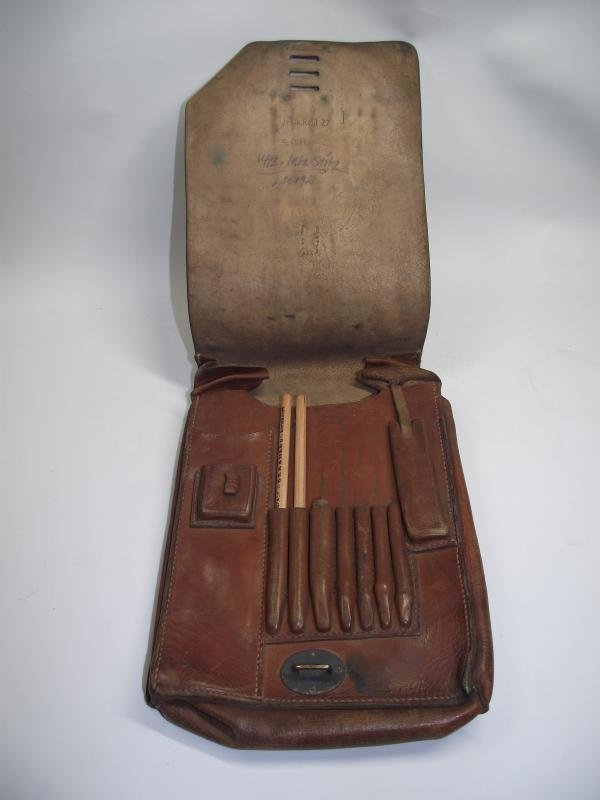 WW2 Named German Luftwaffe Leather Map Case. Flak Regiment 22.