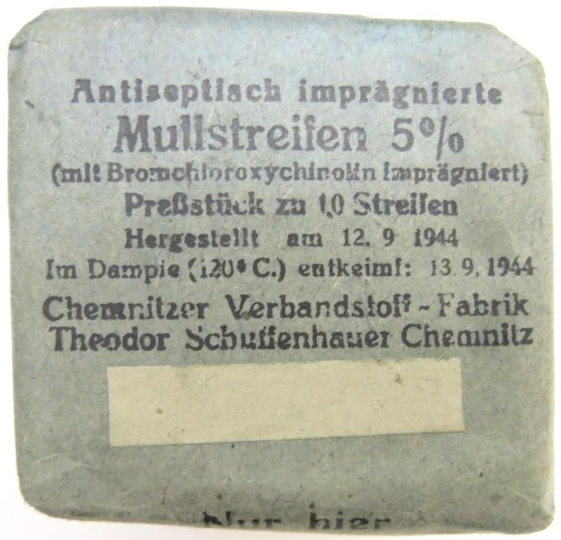 German Wehrmacht Medical Mullstreifen 5% Theodor Schuffenhauer Chemnitz 12. 9. 1944, Hard To Find One.