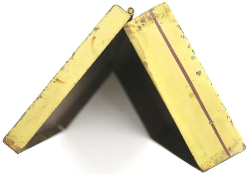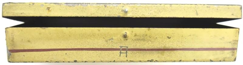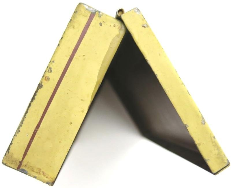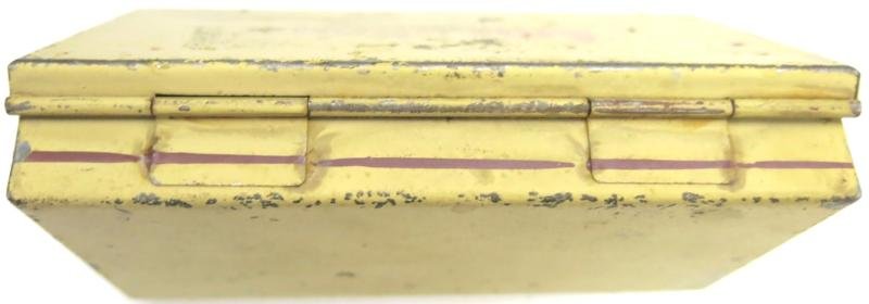 Hard to find tin for Ampullen, you can find this box into the Sanitätstasche für Sanitätsoffiziere leather bag or in some wood boxes with Medical supplies.These yellow tins became highly collectible with the years and they are not easy to find and/or to find in nice condition. This tin is 13,5 x 7 x 2 cms. I´m quite sure all of you already know this box and where it fits, but in case of, see last photo, of course, only for reference and not part of the sale.Shipping Costs:-Europe: 12,50 €.-Worldwide: 16,50 €.