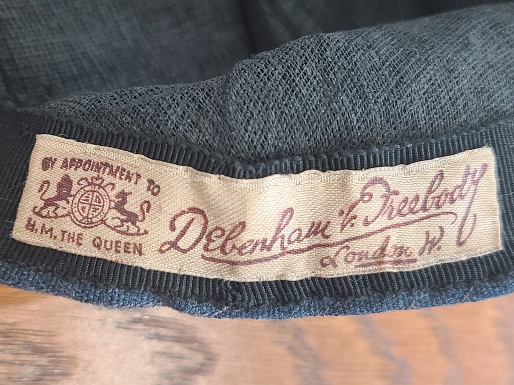 Original American Red Cross garrison cap. This overseas cap was worn with the Military Welfare Service uniform and with Clubmobile uniforms. British made with a nice Debenham & Freebody London label inside. A few small moth nibbles, mostly along the edges or near folds. Some light staining toward the back. Nothing too terribly distracting. There is some loose stitching in the front behind the main fold. It is not noticeable when worn. There is no size label, but it measures about a size 22.