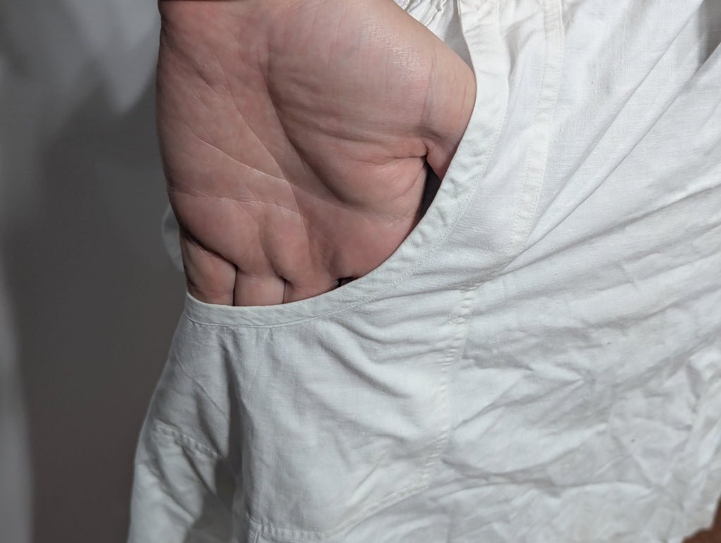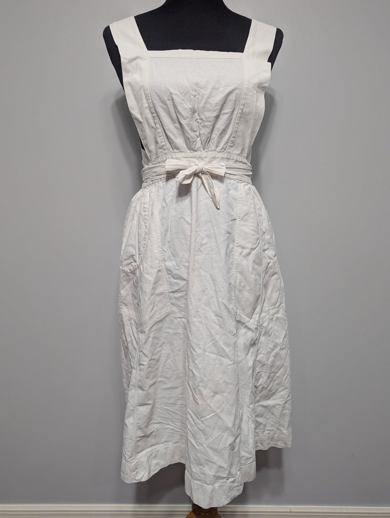 Original WWII DRK (Deutsches Rotes Kreuz; German Red Cross) nurse apron.It is in good condition with some light general wear. A few areas of light discoloration. Some black specks. There is some staining on the ties.It is double-sided; meaning when one side is dirty, you just flip it over and get back to work. There is one pocket on each side of the apron. The pocket is on the right hand side, regardless of which side you are currently using. Many reproductions neglect to make their aprons double-sided. The overall shape and construction is consistent with originals and the pocket is the right shape and in the correct location (see original photo in listing). Measured in the center, from the top to the bottom, not including straps, is approximately 32 3/4'This is an ideal piece to complete a DRK display or impression. This is an item that was abused on a daily basis and it is great to find one that was well cared for through all of it to survive in nice condition.