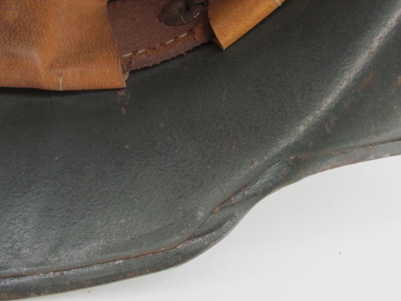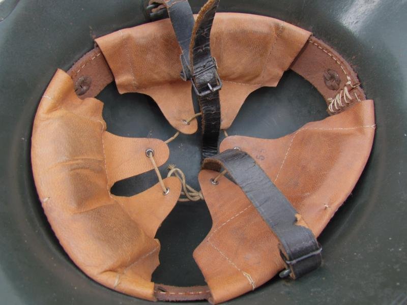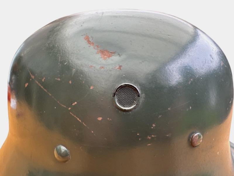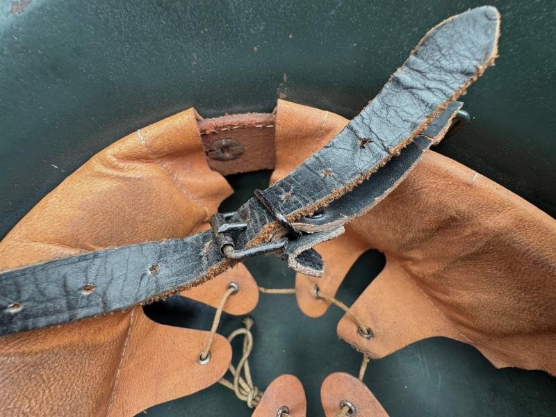 This is an original German RLB (Reichsluftschutzbund โ Reich Air Protection League) helmet, model M34, in the so-called 'Himmler shell' form. Finished in the typical grey-green paint, it displays the large RLB decal on the front with the starburst and swastika.Complete with liner and chin strap. Size 55 marked.This rarer variant is distinguished by its smooth, domed shell profile and ventilation holes with mesh inserts, showing authentic period wear.The helmet has a small dent on the top ( See pictures )Overall, a scarce and highly desirable example of the so-called 'Himmler shell' Luftschutz helmet, ideal for any serious Third Reich helmet or Luftschutz collection.Hard to find!