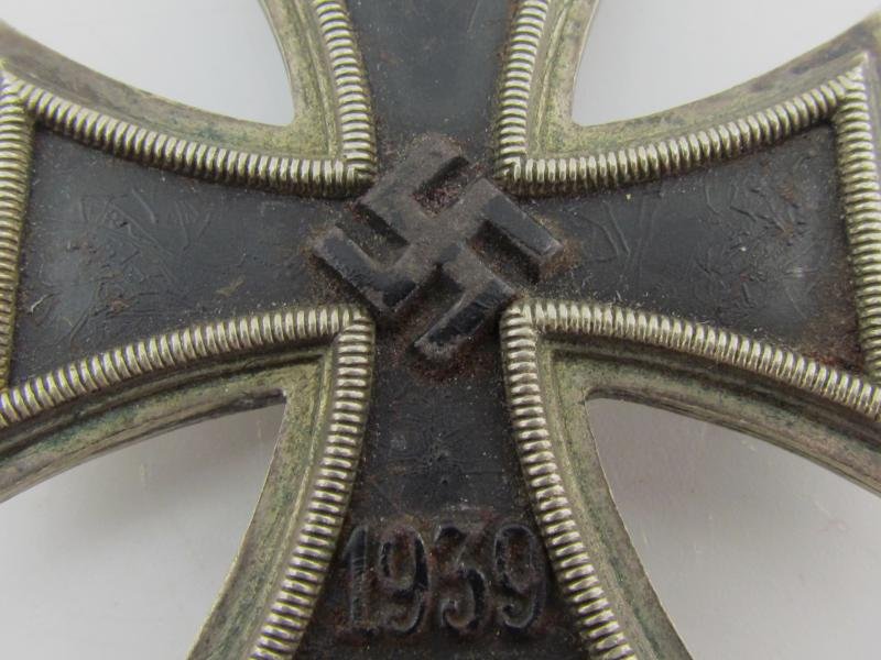Unmarked example with a known design made by the firm of Klein & Quenzer AG, Idar-Oberstein ('65').To receive the Iron Cross 1st Class, the recipient had to have previously been awarded the Iron Cross 2nd Class. It was usually awarded for repeated acts of bravery or leadership success in battle. Soldiers therefore had to have a record of service before they were eligible for this higher distinction.in used but very good condition