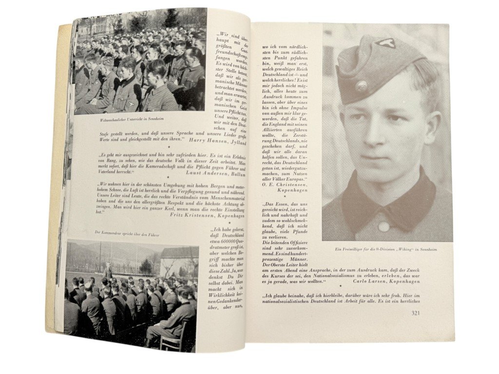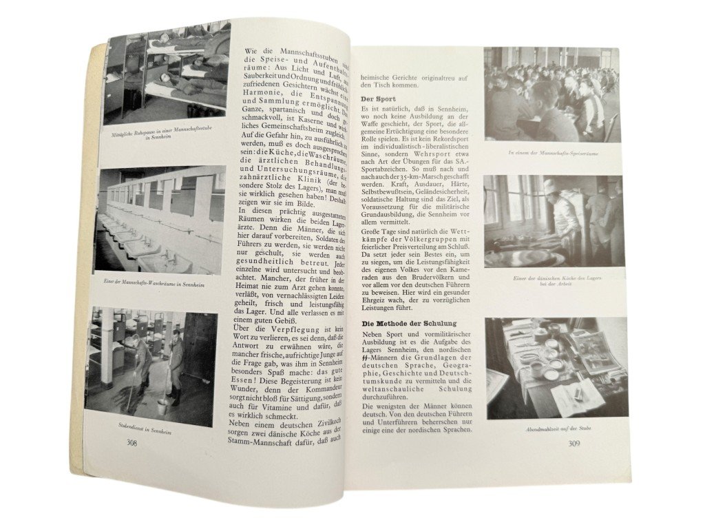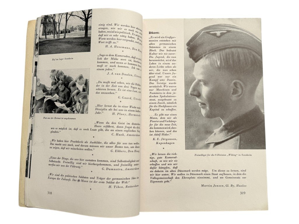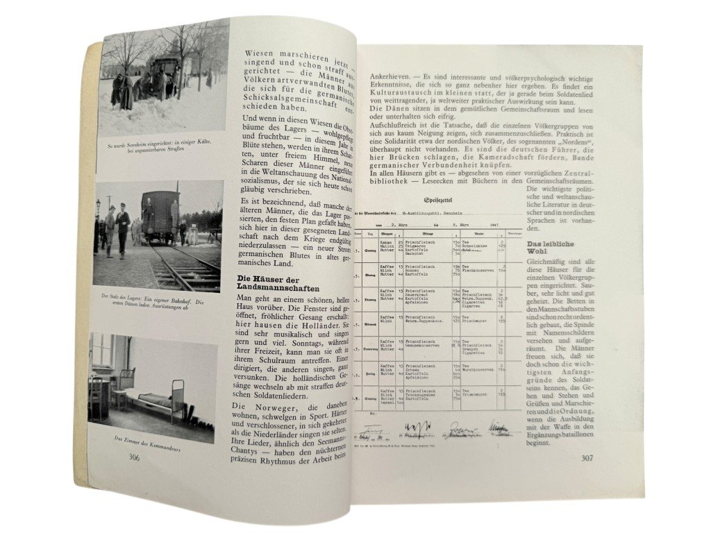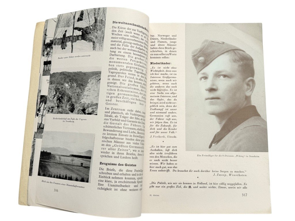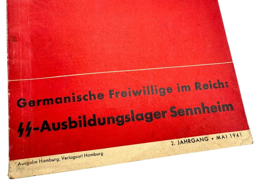 This German propaganda brochure was published in May 1941 as part of the magazine Die Aktion β Kampfblatt fΓΌr das neue Europa.This issue is entirely dedicated to the SS training camp Sennheim in Alsace, where foreign volunteers from the Netherlands, Flanders, Denmark, and Norway were trained for the Waffen-SS.The brochure contains numerous articles and photographs showing daily life and training in the camp.It includes images of marches, sports competitions, classes, meals, and portraits of volunteers of the SS Division Wiking.The brochure is richly illustrated with photographs of soldiers, camp facilities, uniforms, and group activities.It was published in Hamburg and forms part of the second year of this periodical.An interesting item for any collaboration or foreign volunteer collection!Article number: 16804