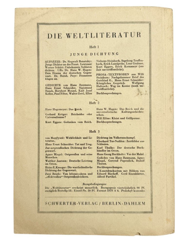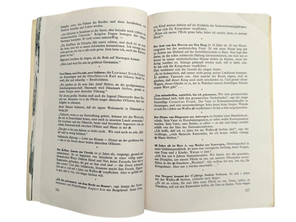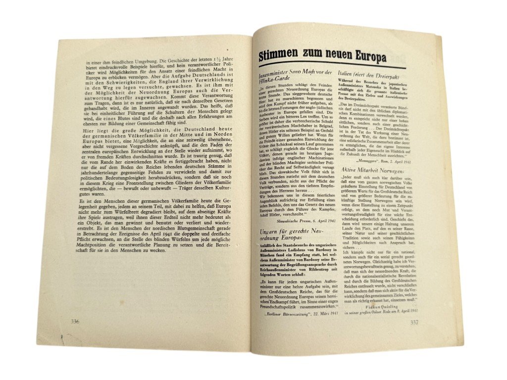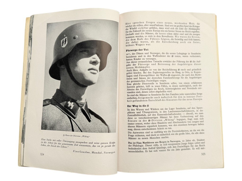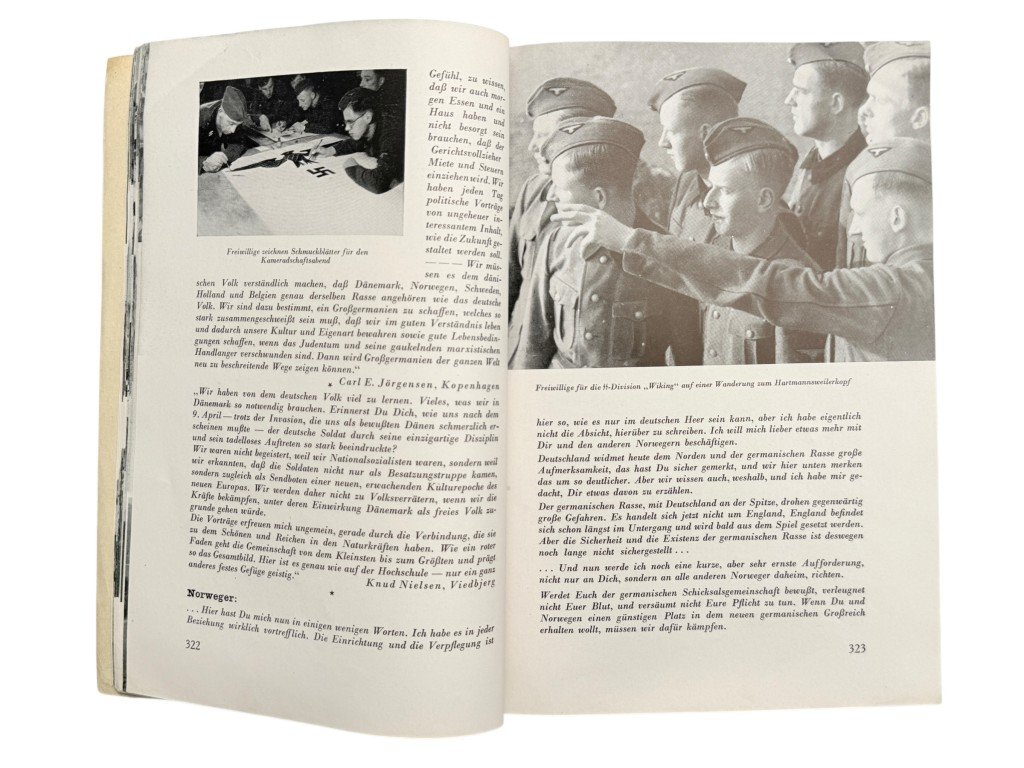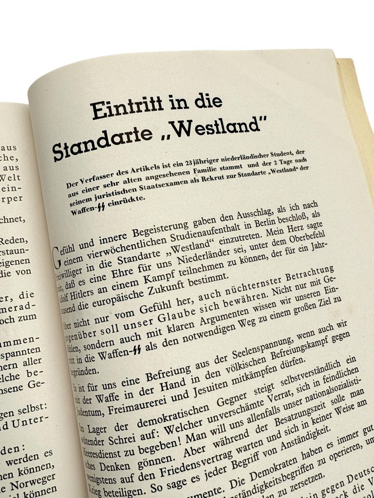This German propaganda brochure was published in May 1941 as part of the magazine Die Aktion β Kampfblatt fΓΌr das neue Europa.This issue is entirely dedicated to the SS training camp Sennheim in Alsace, where foreign volunteers from the Netherlands, Flanders, Denmark, and Norway were trained for the Waffen-SS.The brochure contains numerous articles and photographs showing daily life and training in the camp.It includes images of marches, sports competitions, classes, meals, and portraits of volunteers of the SS Division Wiking.The brochure is richly illustrated with photographs of soldiers, camp facilities, uniforms, and group activities.It was published in Hamburg and forms part of the second year of this periodical.An interesting item for any collaboration or foreign volunteer collection!Article number: 16804