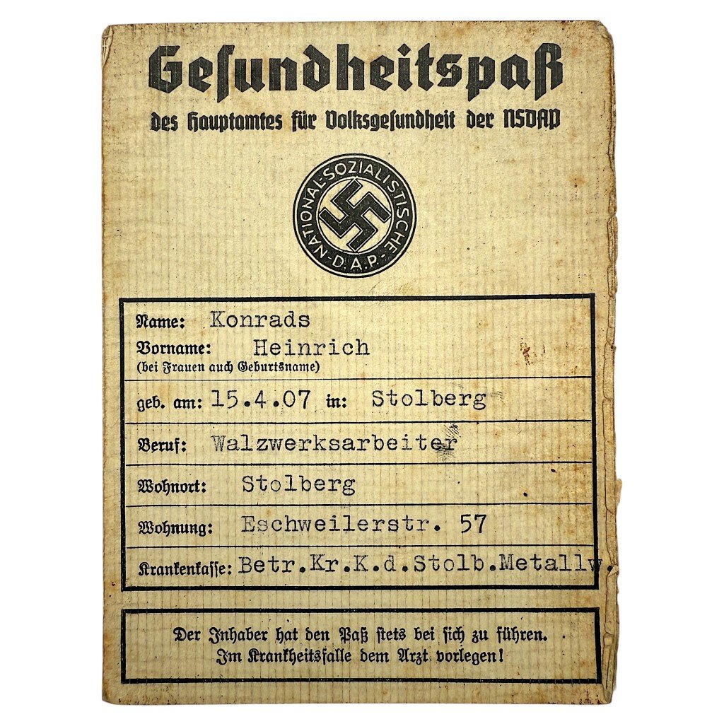 Original WWII German NSDAP Gesundheitspass from Stolberg