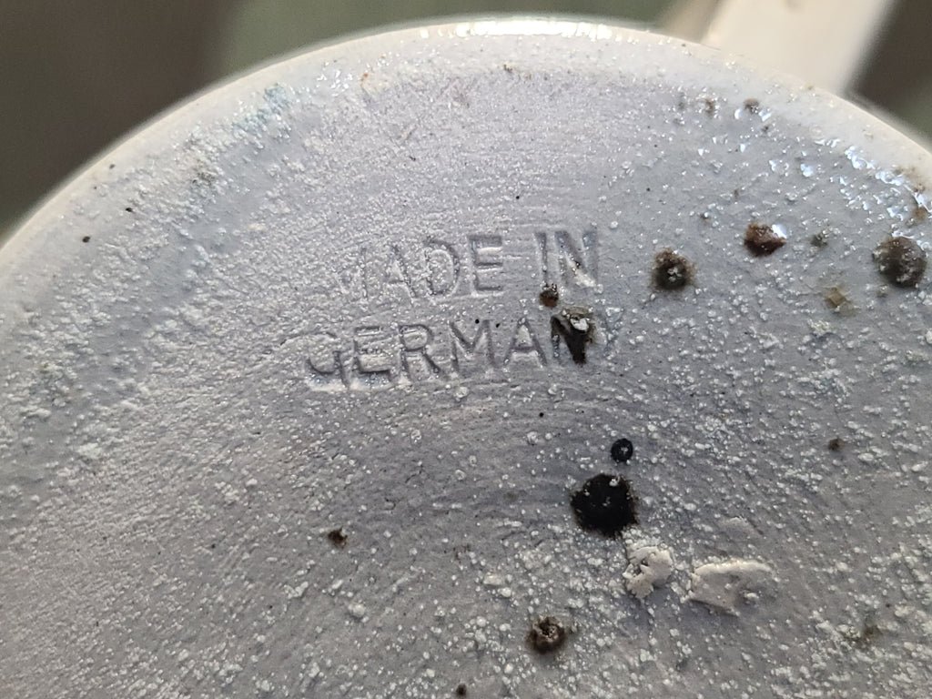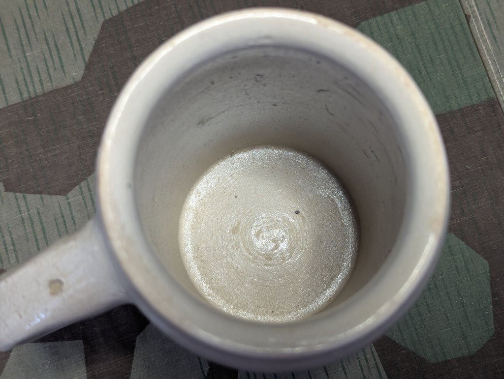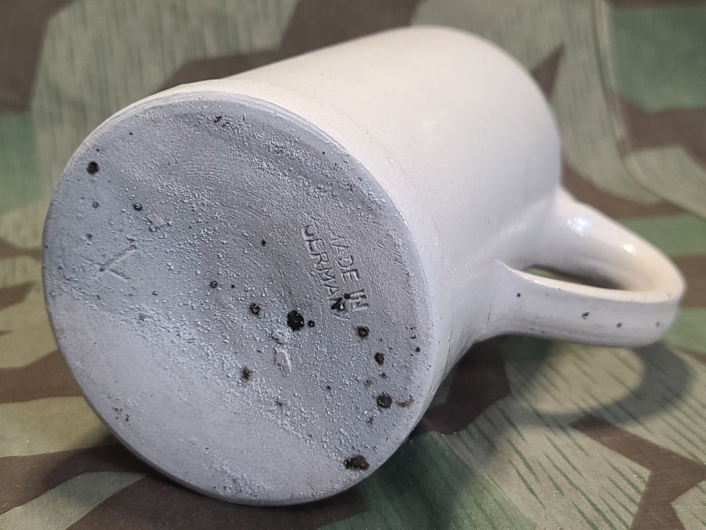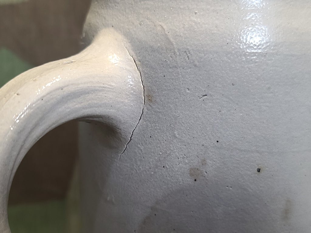Vintage Hofbrรคu 1 liter krug. It is in overall good, usable, condition. There are some small 'cracks' by the handle - they are not all the way through and almost look like a flaw in the glaze rather than a 'break'. Some specks and discoloration.Great item for events to help eliminate farby bottles. This is an older style, but is post war made. Marked Made in Germany on the bottom.This is a krug, not a stein. Stein is what English speakers and tourists say. In German asteinis a stone. This is a beverage container, not a rock!