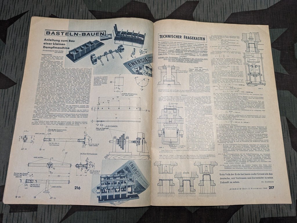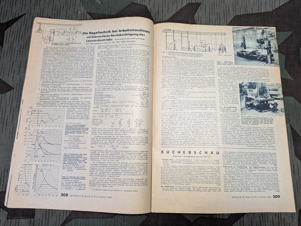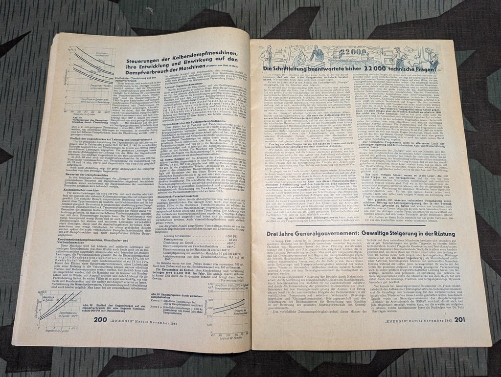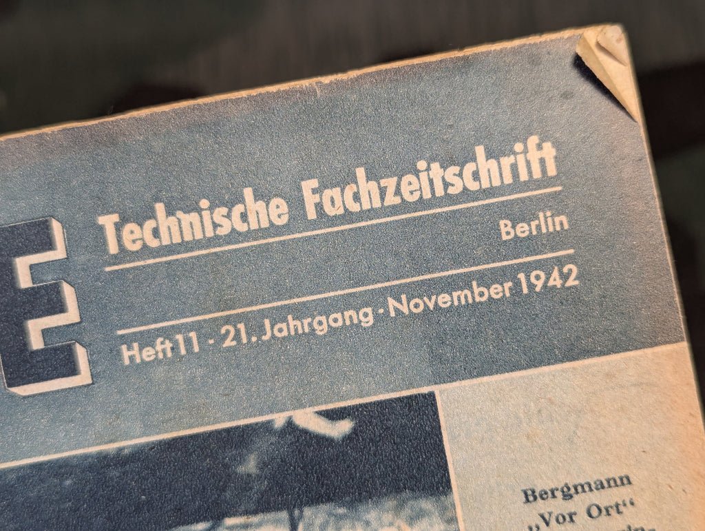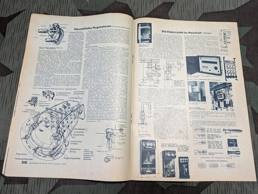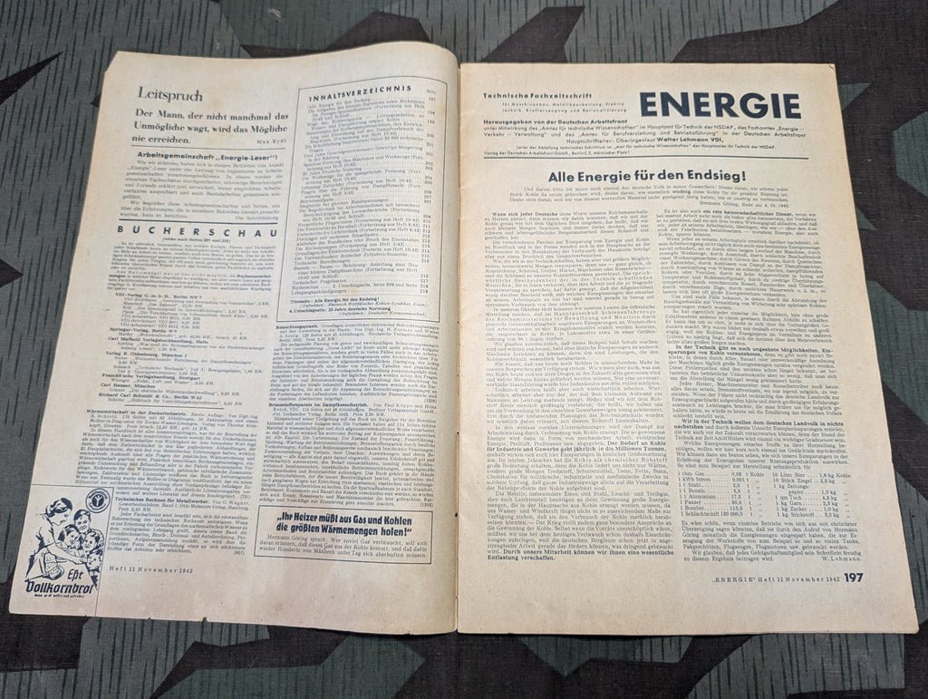 Original 1943 Energie technical profession magazine. This issue is a bit less interesting than the last one I listed, it is a lot more dry and and informational. This is not a Popular Science type magazine full of big ideas and fantasy, it is a grounded serious publication for people that are really into machining. There is one very nice little find in here though, an ad for Vollkornbrot from the same manufacturer that produced the somewhat famous brot boxes you might be familiar with.