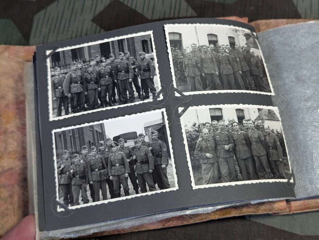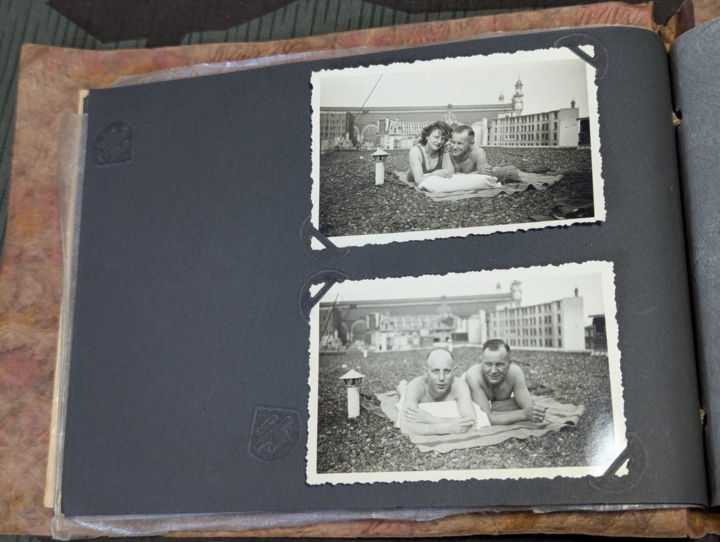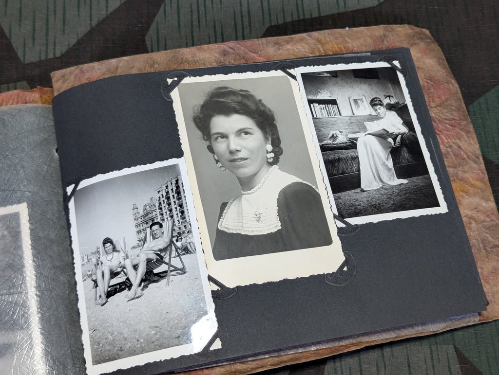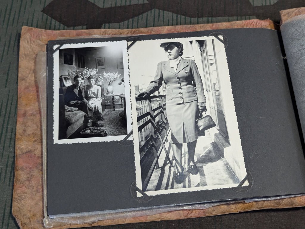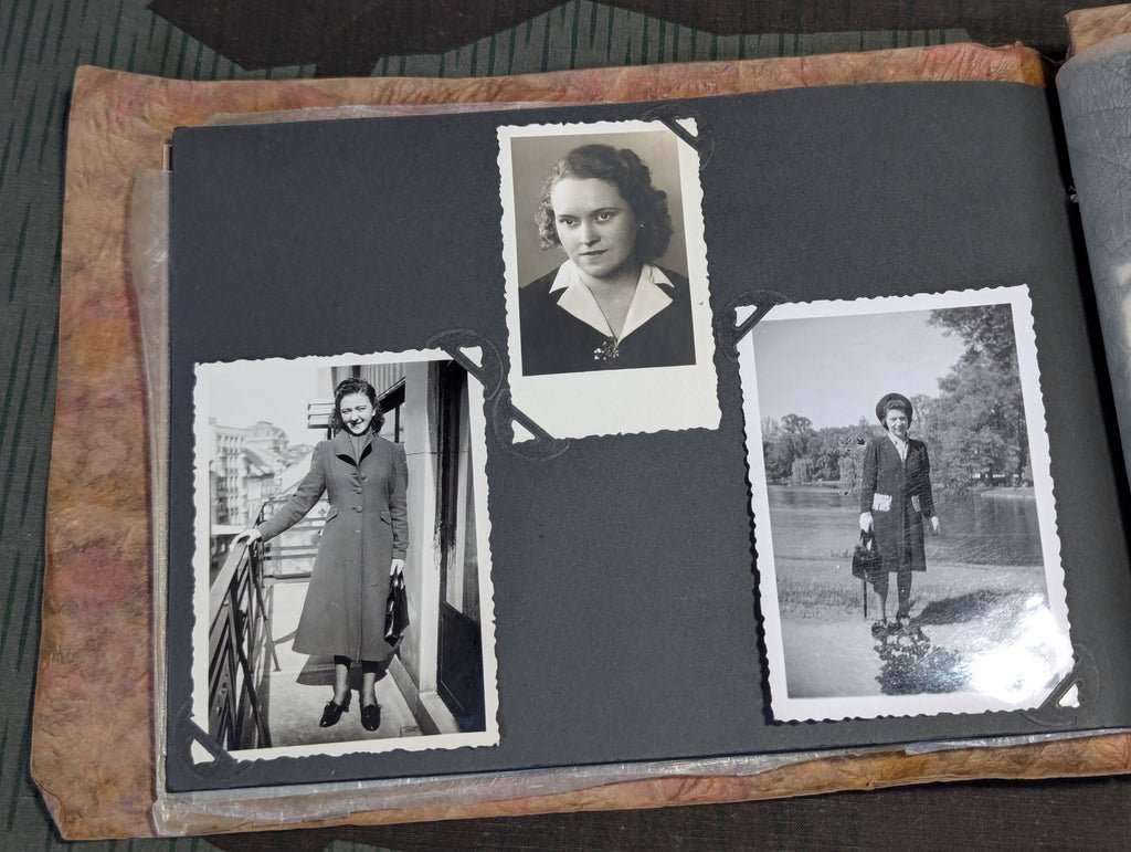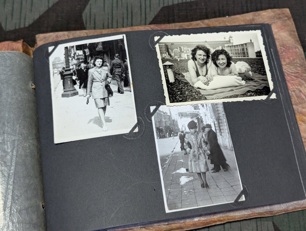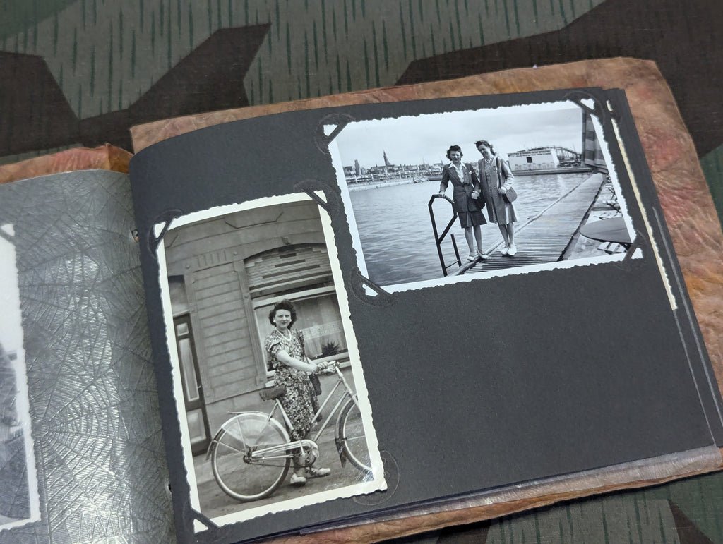 Original photo album of German soldiers, probably on holiday with their girlfriends. Quite a lot of just nice simple relaxed photos. Many of the women look rather out of place in many ways; much of their style looks very modern, almost postwar, although they clearly are war time pictures. The album itself appears to be home made. 53 photos in total. Some have writing and dates, others see blank. I did not look behind every one as some photos are hard to remove without causing damage. This album looks 'complete' and not messed with or had photos removed.