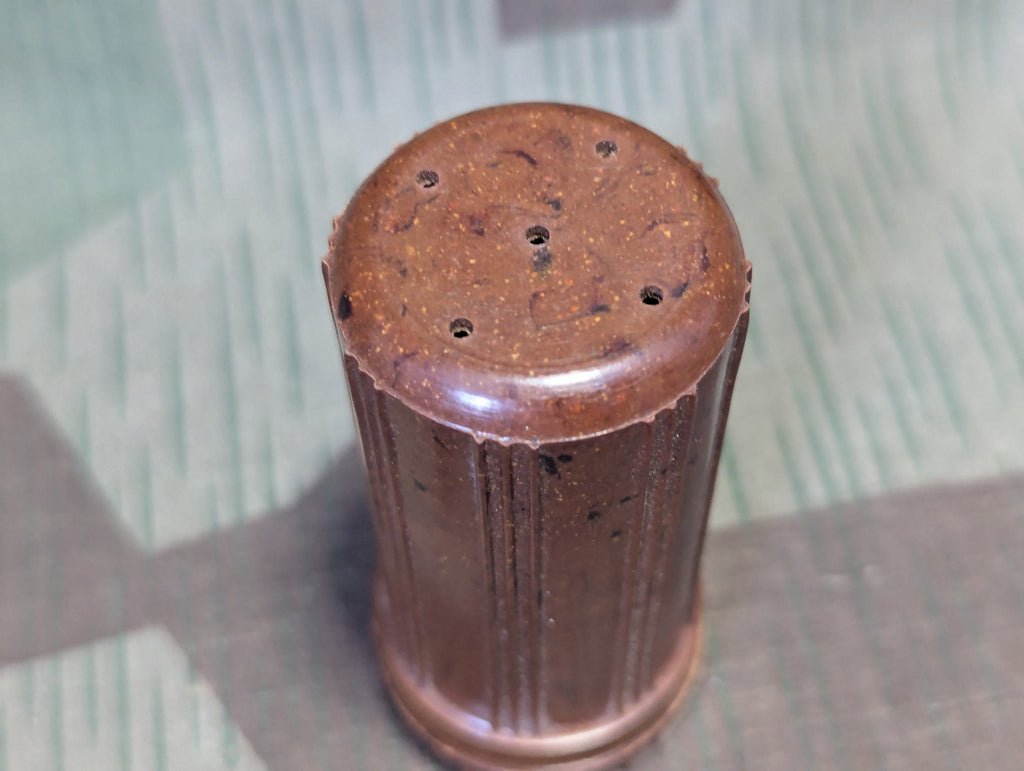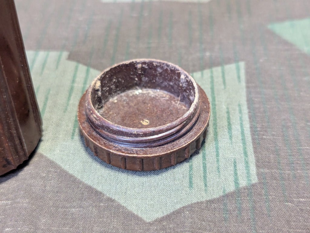 German brown Bakelite shaving soap container in good condition. Some soap residue inside.