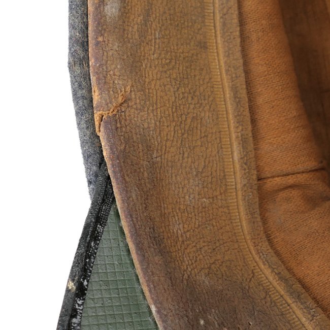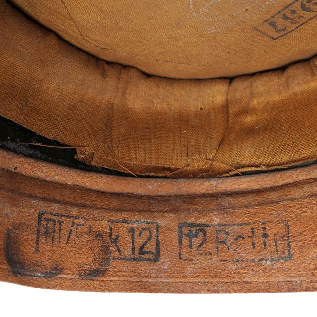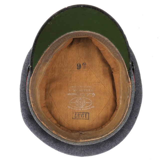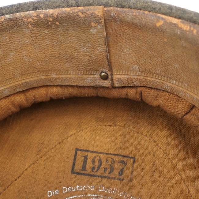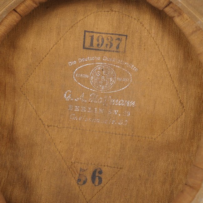 This is a nice original Luftwaffe 'Flakartillerie' (Anti-Aircraft Artillery) EM/NCO's Visor Cap (SchirmmΓΌtze). Visor caps were a standard item for all armed forces personnel during the Third Reich period. Although enlisted personnel were issued their caps from government supplies they were also permitted to purchase privately tailored caps. This is an official Luftwaffe issue cap, the sweatdiamond is missing, the cap is nicely maker marked by the company of 'G.A. Hoffmann' from Berlin and dated 1937. The cap is size '56' marked. The leather sweatband is in good supple condition, see photos, the cap is unit marked on the inside of the sweatband for the '12 Battr. III./Flak 12' (Flak-Regiment 12). The cap is having the red 'Truppenfarbe' (branch-colour) for personnel serving within the Flakartillerie. The simulated leather chinstrap is in good condition. The cap is complete with its original aluminum cocarde and cap-eagle. The cap is in overall good condition with normal traces of usage and some minor (moth)damages. Nice original Luftwaffe Flak visor cap in good used condition!