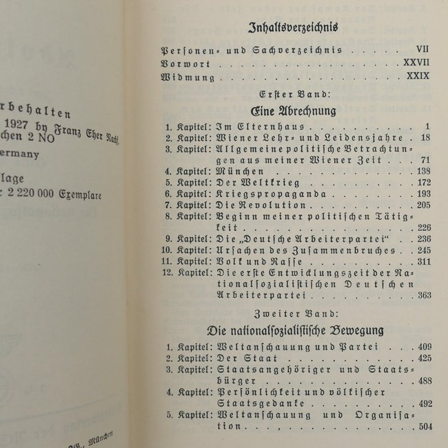 Adolf Hitler's 'Mein Kampf'. The book was published by the 'Zentralverlag der NSDAP, Frz. Eher Nachf.' from MΓΌnchen in 1936. The book features 781 pages. Complete with portrait image of Adolf Hitler in front of the book. Interesting original book in good used condition.