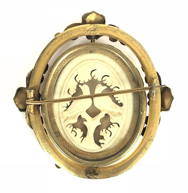 WW1 Royal Artillery Portrait carved love birds swivel memento brooch