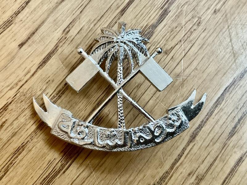 Maldives Islands Military Forces anodised silver cap badge in mint condition.