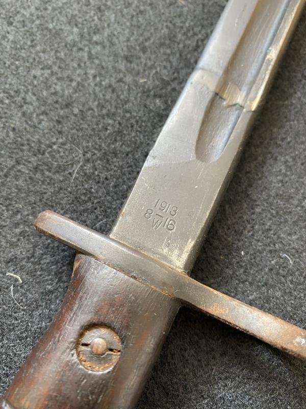 This is a nice WW1 U.S. made British Winchester M1913 Bayonet for the P14 Rifle, which is fitted with a nice scabbard and its frog, the blade is dated 8, 16, a nice one to have in the collection. Age Restricted Item. Proof of age must be provided. U.K. Sales Only.Check out our YouTube channel below.https://m.youtube.com/results?sp=mAEA&search_query=chase+militaria+
