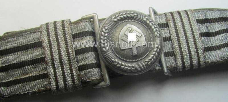 RAD (ie. 'Reichsarbeitsdienst') 'standard-pattern', officers'-dress-model aluminium-based belt-buckle and accompanying 'brocade'-based belt (ie. 'Paradefeldbinde für Offiziere des Reichsarbeitsdienstes')