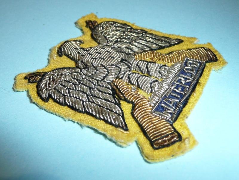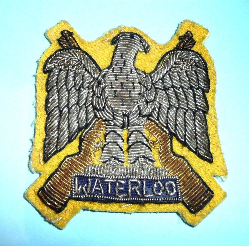 A nicely padded example in silver and gold bullion thread on a yellow and blue background (blue behind the tablet Waterloo). Circa 1971 onwards. In great condition.Linaker & Dine Colour Plate B refers.C23.1