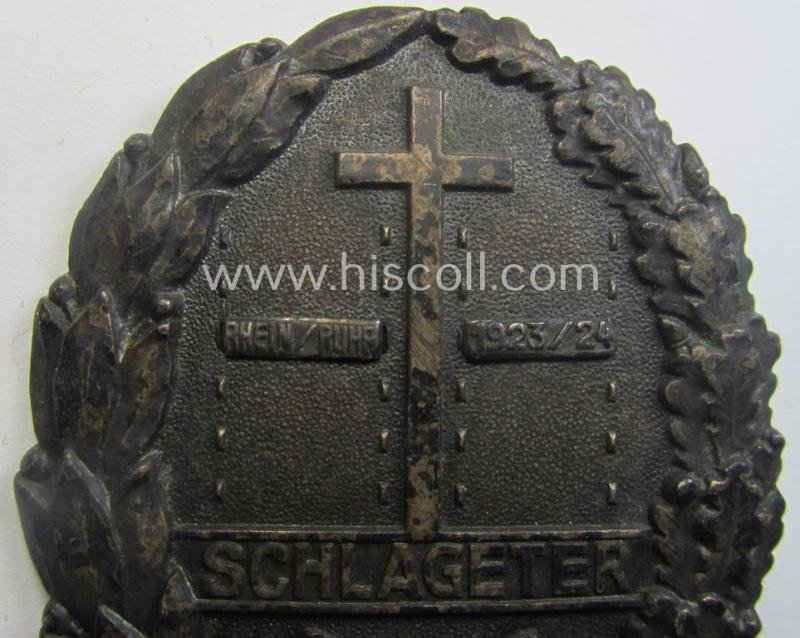 'High-quality'-produced example of a: 'Freikorps'-related award being a so-called: 'Ehrenzeichen des Schlageter-Gedächtnis Bund e.V.', showing the bars ie. 'Spangen' resp. entitled: 'Rhein/Ruhr' and/or: '1923/24'