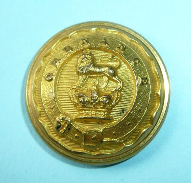 Circa 26mm in diameter, fixed shank and maker marked Jennens & Co (PoW feathers) London, Gilt bright, sharp detail and in superb condition. Worn circa 1875 - 1894. Rare.The Control Department was disbanded in 1876. The Ordnance/Military Store officers joined a newly created Ordnance Stores Department (OSD). Five years later, in 1881, the soldiers also left the ASC and became the Ordnance Store Corps (OSC). In 1894 there were further changes. The OSD was retitled the Army Ordnance Department (AOD) and absorbed the Inspectors of Machinery from the Royal Artillery (RA). In parallel the OSC was retitled the Army Ordnance Corps (AOC) and at the same time absorbed the Corps of Armourers and the RA's Armament Artificers.Ripley No 520 refers.Comm DaSm