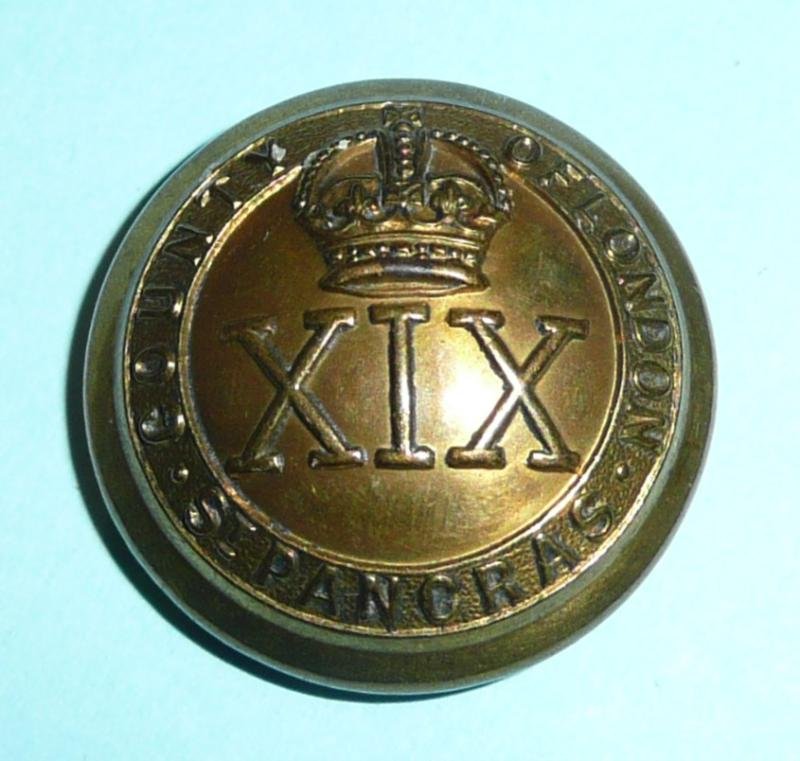 The 19th County of London Battalion ( St Pancras ) Officer's Large Pattern Gilt Button, King's Crown