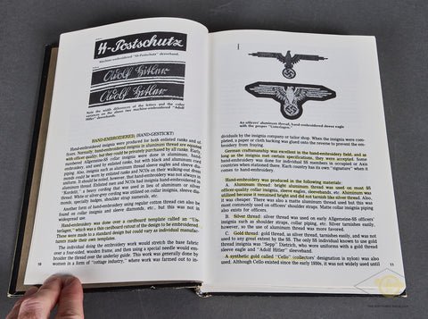 Cloth Insignia of the SS by John R. Angolia-Used hardcover without dust jacket, this 496-page book is used but in very good shape. The edges are slightly rubbed as are the edges of the hardcover. This shows some shelf use, but otherwise it is really like new. Someone has written John Angolia's phone number down, just under the dedication. This book is complete with black and white illustrations throughout. This is the 'benchmark' book regarding SS insignia. A must have for any collection. This is the second edition, published in 1983. A true gem.