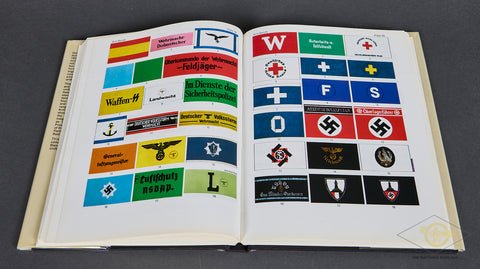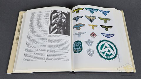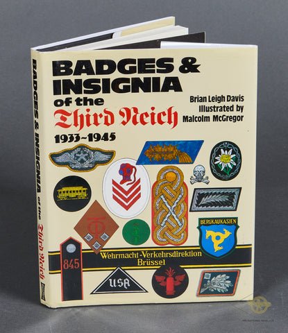 Badges & Insignia of the Third Reich 1933-1945 by Brian Leigh Davis-First published in 1983. This is a first printing. This hardcover book contains 208 pages and describes how the Reich made great use of badges and insignia to indicate rank and function in their armed forces, paramilitary, political and administrative uniformed groups. This book illustrates the cloth badges and insignia worn by the personnel of 64 different uniformed organizations and formations. Very clean, dust cover is almost perfect, with a little folding from shelf use.