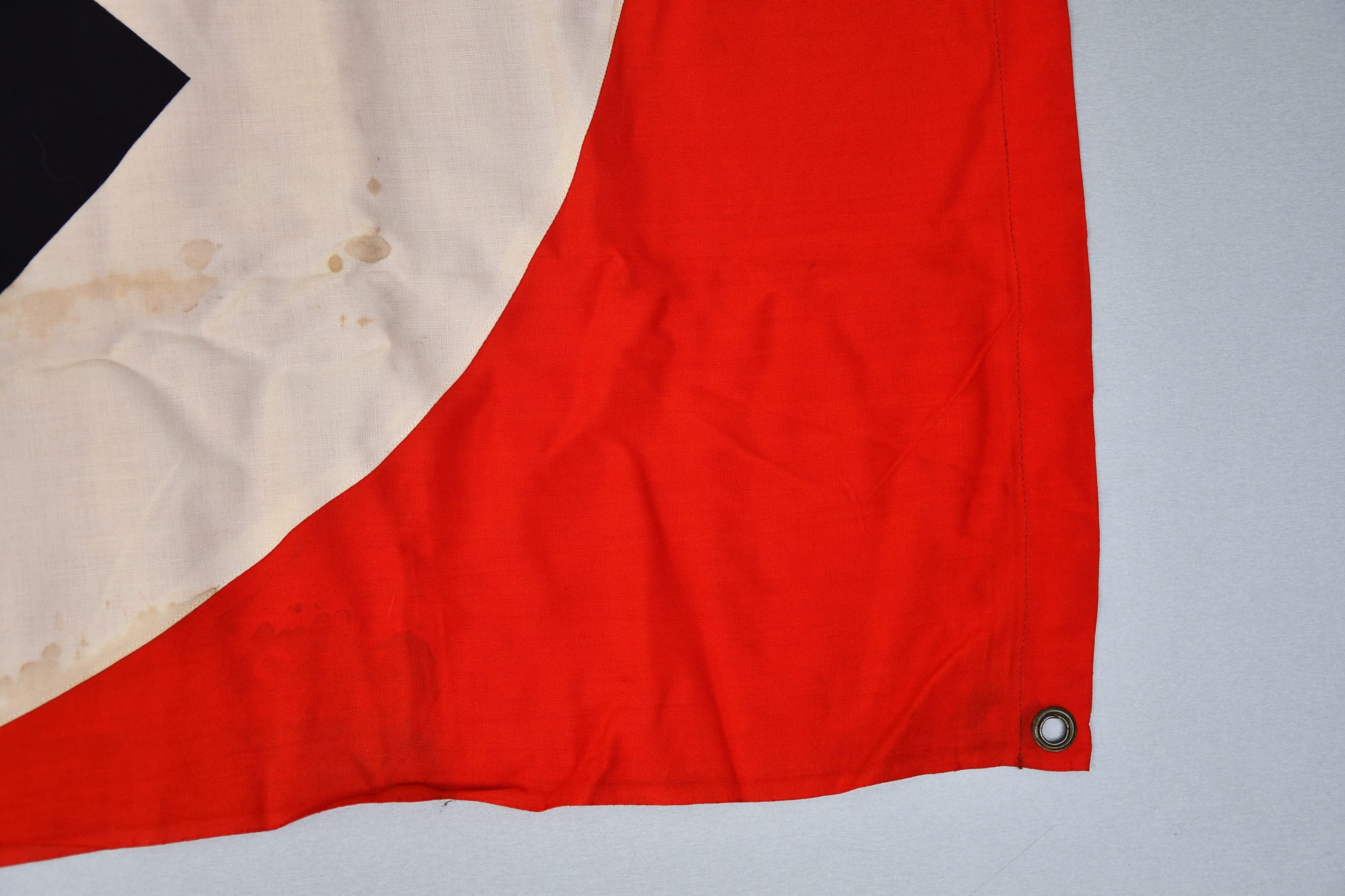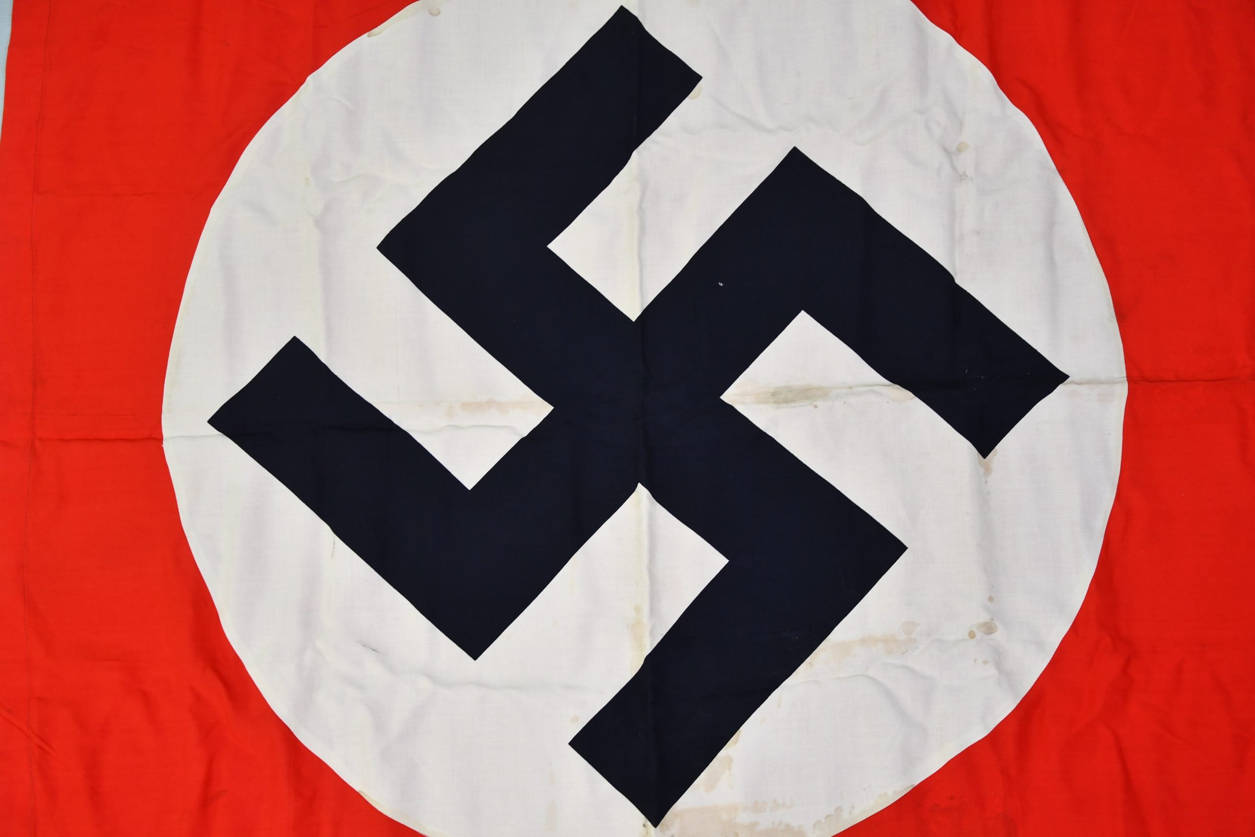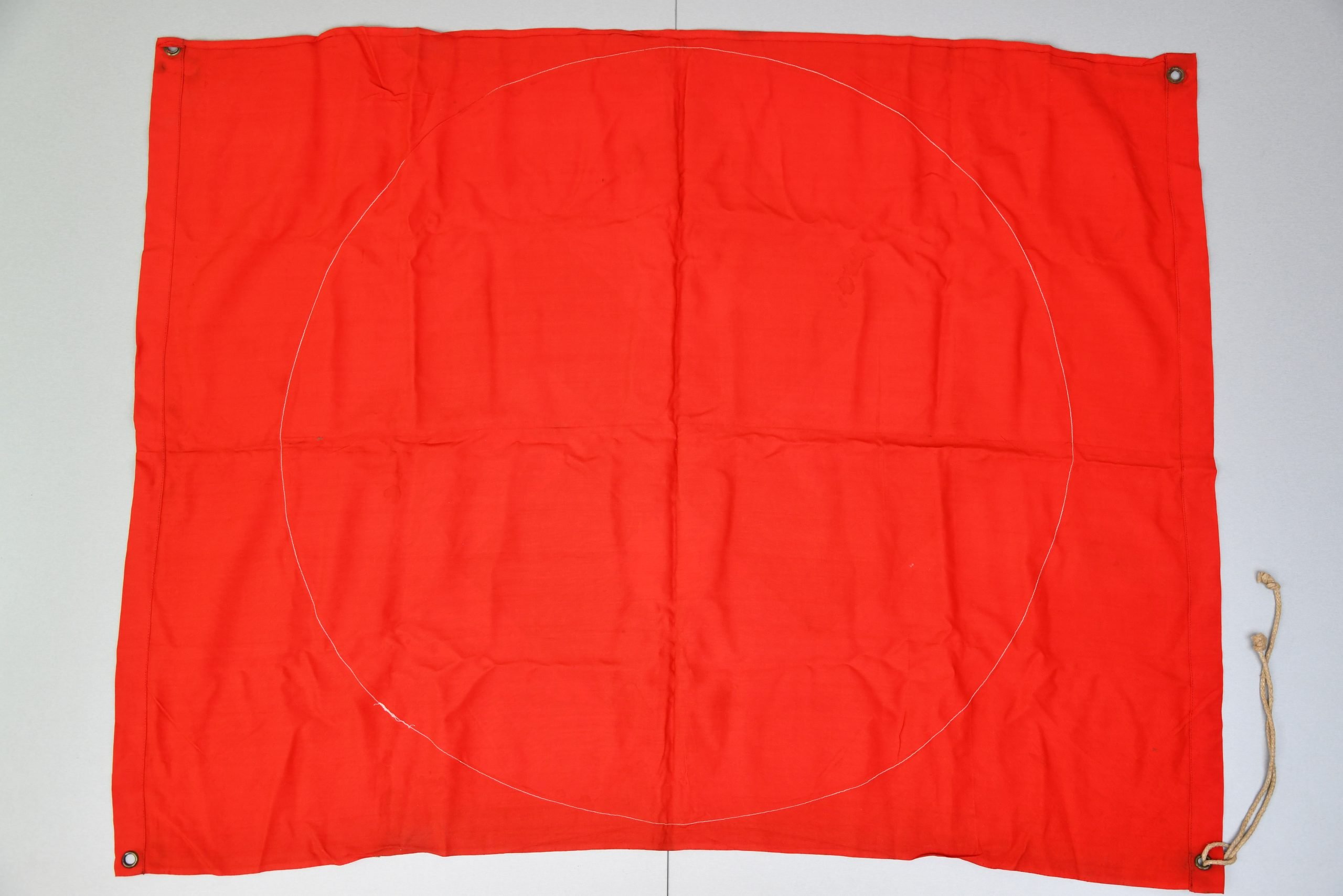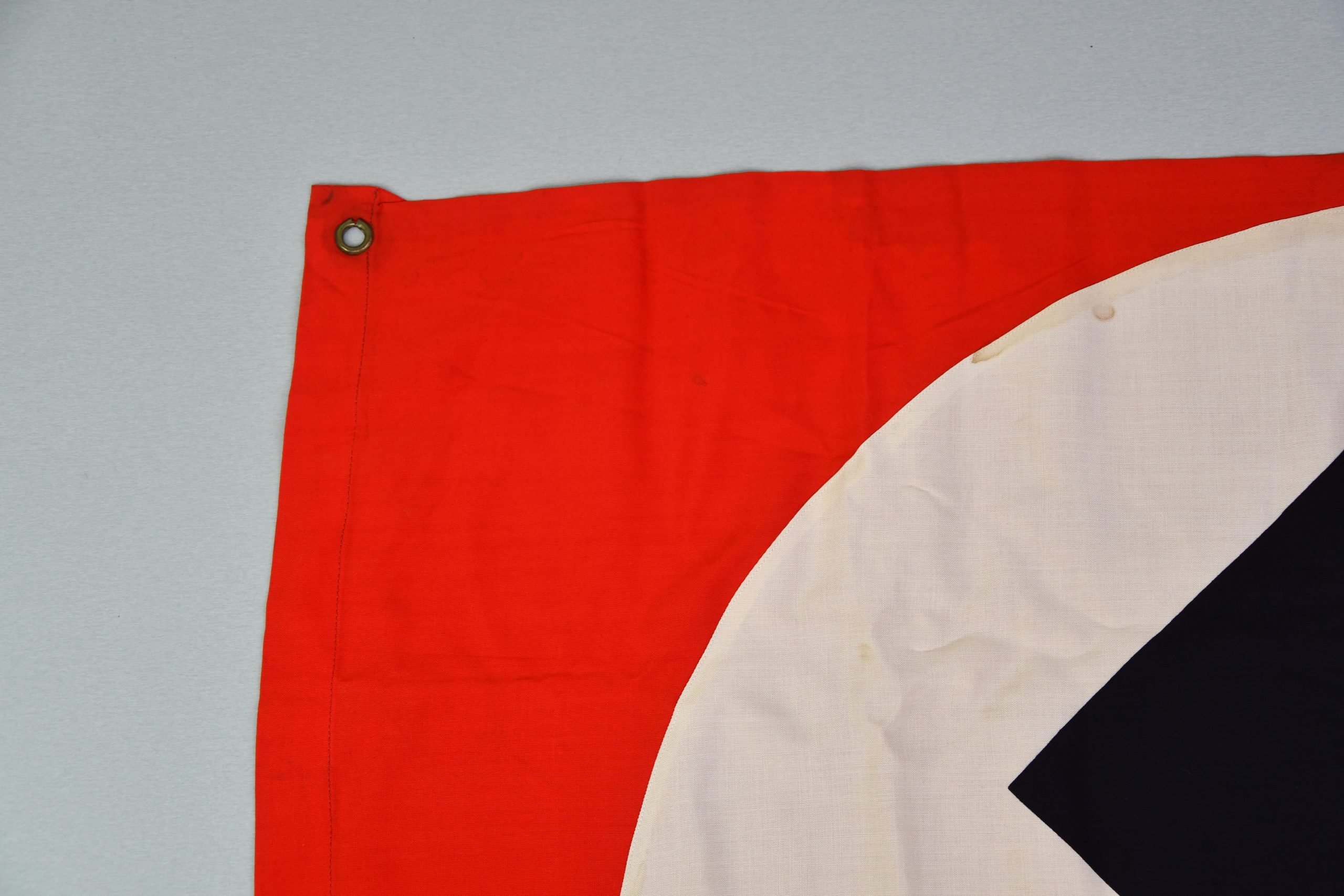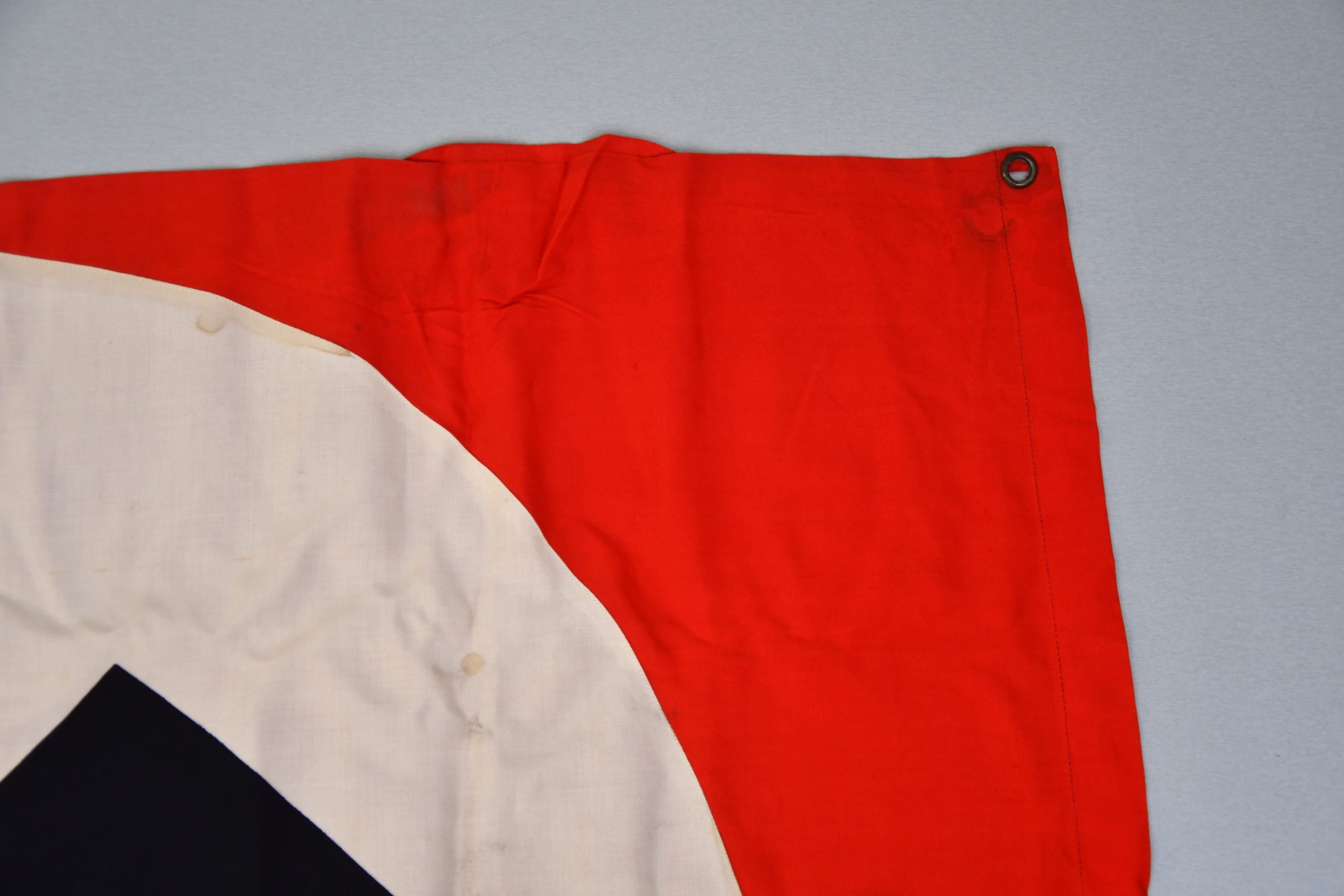 Genuine unissued Wehrmacht swastika flag to put over the hood of vehicles such as jeeps and tank to be recognized by friendly airplanes. Has 4 grommets on each side of the flag to attach it to a vehicle. Size 75 x 95cm. Excellent condition.