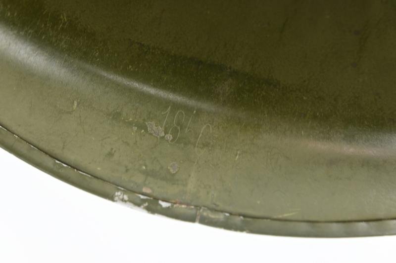 In a stunning near mint condition a extreme hard to find US WW2 M2 Paratrooper Combat Helmet Shell.The shell comes in the original paint for 97% and has productionumber 185C.The helmet shell is complete with one of the two D-bales, sadly one was broken down like most do during use in WW2.The helmet has on the inside and outside no traces of wear only light traces of age but in my opinion a very stunning never used example!add a inland paratrooper liner inside and you have a great early helmet set!