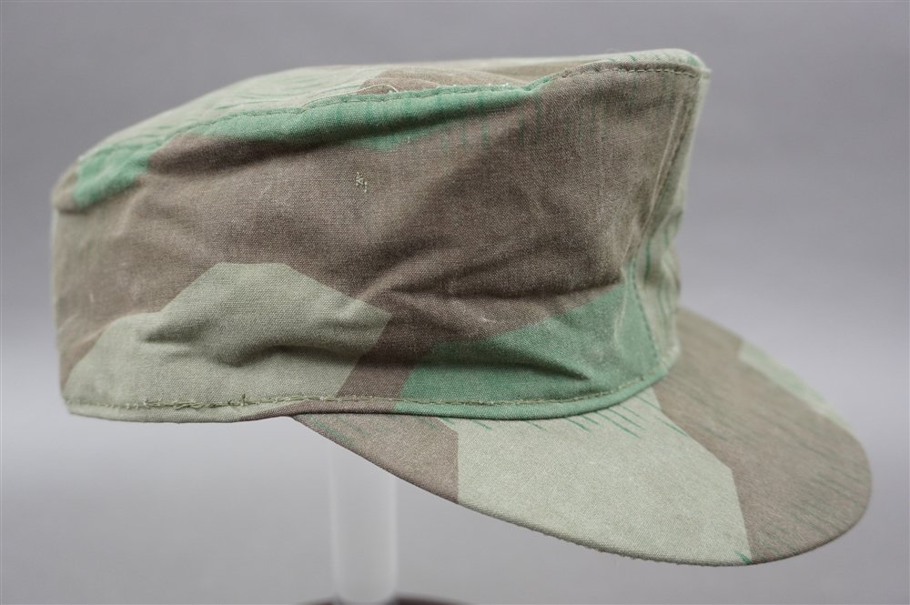 Reproduction German WWII Heer/Luftwaffe Splinter 'A' Camouflaged M42 Cap Size 57/58-A nice reproduction made out of Original German WWIISplinter 'A'camouflage material. Unknown where it was made. Size is approximate since it does not have a size stamp. Unsure if hat was used, but does have some creasing from storage.