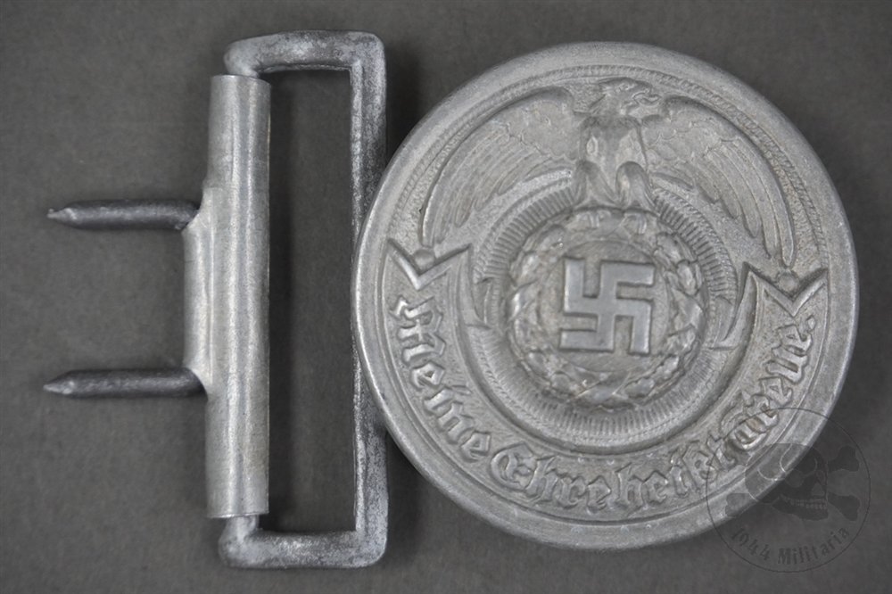 Reproduction Waffen SS Officer's Aluminum Belt Buckle-Nice High Quality buckle and almost identical to the originals! Maker marked RZM 36/39 SS OCL for Overhoff & Cie. Does not come with keeper.