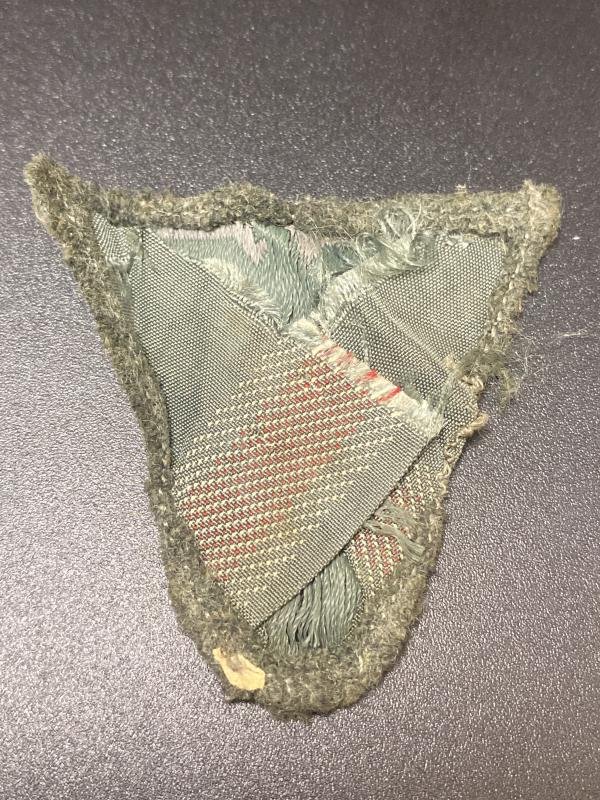 Original German army field cap T trapezoid cut off as worn by GJ troops. All the original machine sewn threads are present, with remains of the wool of the cap on the reverse.