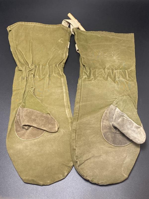Original German army field worn mountain troops waterproof mittens. Faint stamp inside. In good used condition. Perfect matching pair.
