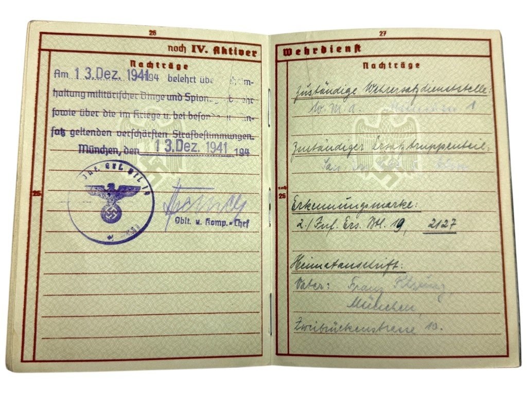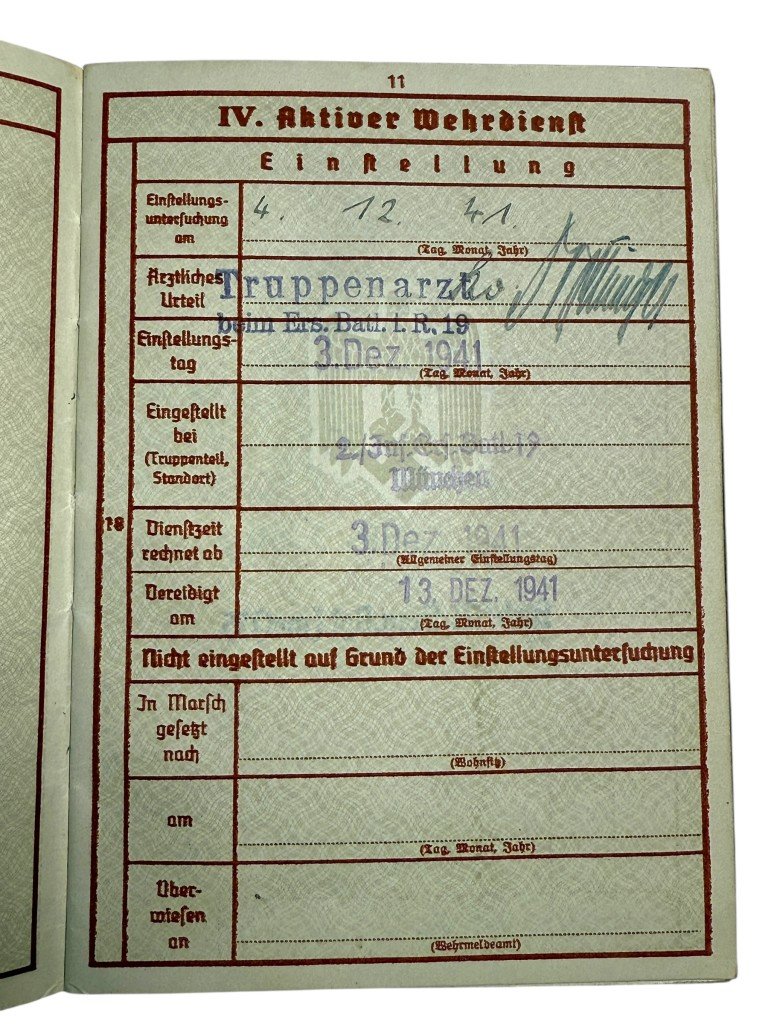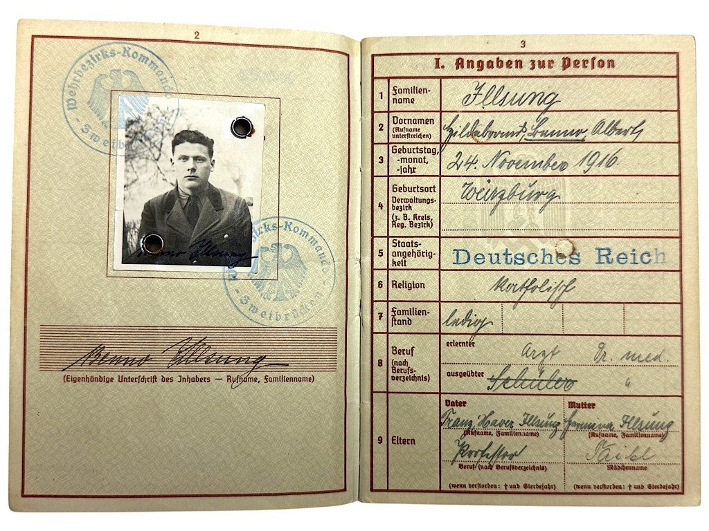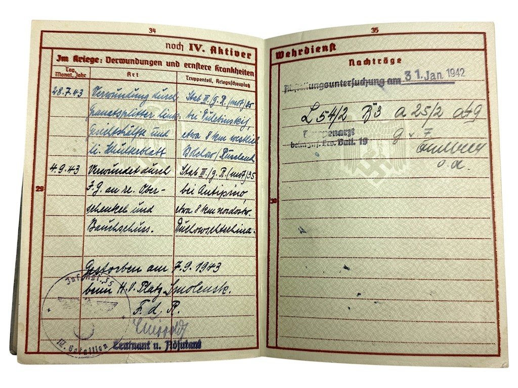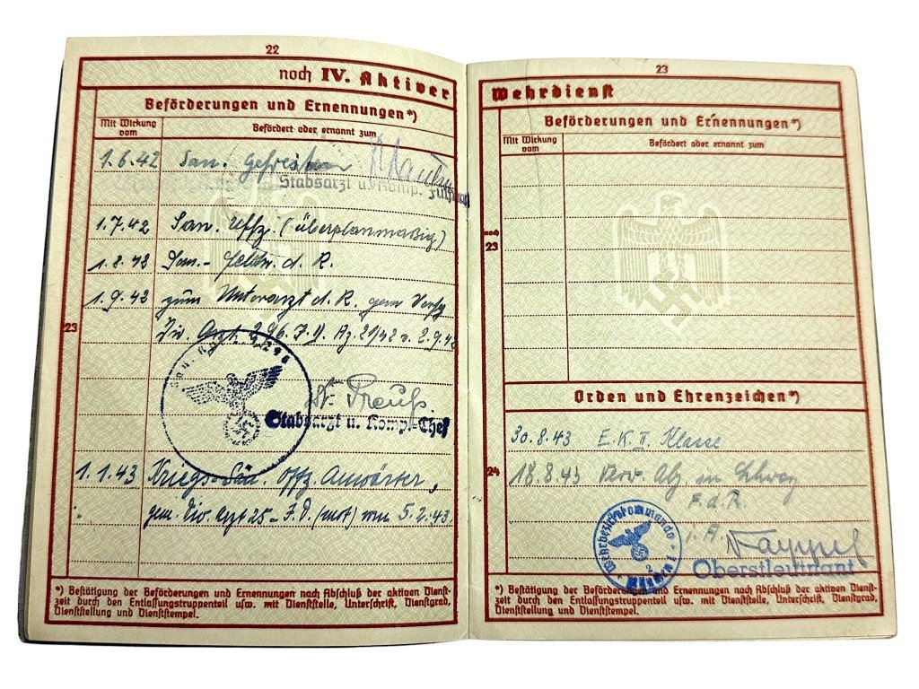 Original WWII German WH Unterarzt Wehrpass KIA near Smolensk