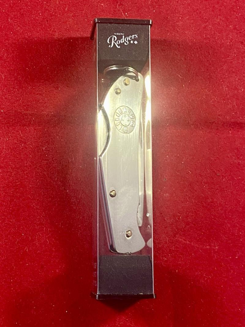 Here on offer is a rare Joseph Rodgers special edition 2000 Millennium collectors lockback folding knife, still in its clear plastic box and in mint condition.I bought this knife brand new from Joseph Rodgers of Sheffield in 2000, as a memento of the 2000 millennium. It has been displayed, in its clear plastic box, in a glass display case for the last 25 years.I believe the production run on this special edition knife was very low, so they are rare to find these days, especially in mint condition!These were made as a small 'range' of special edition knives to commemorate the 2000 millennium.This knife has a mint 2' polished stainless steel curved blade that is stamped on one side of the ricasso with the Jospeh Rodgers makers mark of the Star and Maltese cross stamp and the name:RODGERSSTAINLESSSHEFFIELDENGLANDThe Star and Malta cross marks was originally that of Benjamin Rich. Rogers registered the same mark in 1764.The blade opens well and locks in place securely. The blade is released by depressing the lock latch on the top of the grip.The plain grip scales are made of stainless steel and are held in place by four brass domed headed rivets.On the front scale, it has a circular embossed stamped with the details, 'MILLENNIUM' and the year '2000'.It has a small suspension ring set at the bottom.The knife comes in its original clear plastic box with black removable ends. There is a design reference number on one side of the end, that reads as:12043/2K1LOCKINGBLADEThis is a great opportunity to obtain a rare mint special edition Joseph Rodgers knife, that can't be upgraded.The blade measures 2' (5.1cm) long with a cutting edge of 1.7' (4.2cm) and the knife itself is a total of 4.5' (11.4cm) long when open, excluding the ring.It weighs 35g.Please see my pictures for the details of the condition, which complement this description.Please see my TERMS OF BUSINESS regarding Deliver Charges and Insurance regarding additional insurance cover, should you require it, BEFORE the item is dispatched.The responsibility lies with the customer to check with your Customs restrictions that this item can be imported into your country.