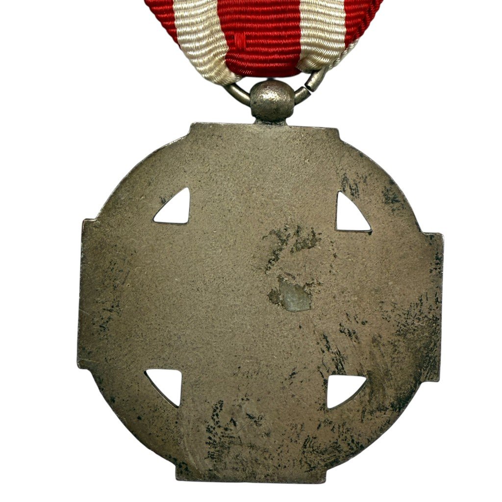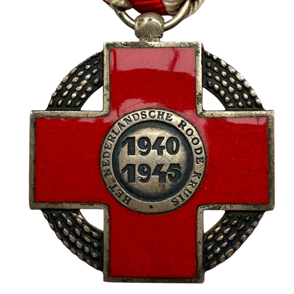 The Dutch Red Cross Medal 1940β1945 is an award issued by Het Nederlandsche Roode Kruis (The Netherlands Red Cross) to individuals who rendered outstanding humanitarian service during the Second World War.This medal was presented to volunteers, nurses, and other personnel who provided aid and support to the wounded, refugees, and victims of wartime violence between 1940 and 1945.The medal features a red enamel cross with a silver-colored central circle bearing the inscription 'HET NEDERLANDSCHE ROODE KRUIS 1940β1945.'An interesting medal for any Dutch World War II collection!Article number: 16839Originele WWII Nederlandse Rode Kruis 1940-1945 medailleDe Nederlandse Rode Kruis Medaille 1940β1945 is een onderscheiding die werd uitgereikt door het Het Nederlandsche Roode Kruis aan personen die zich tijdens de Tweede Wereldoorlog bijzonder verdienstelijk hadden gemaakt op humanitair gebied.Deze medaille werd toegekend aan vrijwilligers, verpleegkundigen en andere medewerkers die hulp en ondersteuning boden aan gewonden, vluchtelingen en slachtoffers van oorlogsgeweld tussen 1940 en 1945.De medaille bestaat uit een rood geΓ«mailleerd kruis met in het midden een zilverkleurige cirkel met het opschrift 'HET NEDERLANDSCHE ROODE KRUIS 1940β1945'.Een interessante medaille voor de Nederlandse Tweede Wereldoorlog collectie!