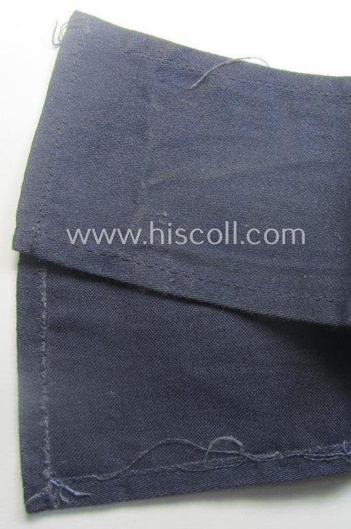 This is a neat - moderately used and I deem tunic-removed and with certainty not that easily encountered! - darker-blue (ie. golden-yellow-toned) and typical machine-embroidered) example of a Third Reich-period armband (ie. 'Armbinde') as was specifically intended for usage by the various officials serving within: 'Deutsche Reichspost'-organisation and that comes in a just moderately used- (and/or I deem most certainly worn-), condition. These interesting armband were executed onto a darker-blue-coloured- and/or linnen-based background and were intended for usage by staff-members (ie. officers) tasked with various postal-duties and were worn onto the specific uniforms as used by this organisation (as can be noticed on the pictures). The armband measures approximately 38 x 7,5 cms. and shows a neatly interwoven (ie. machine-embriodered) illustration of a left-facing eagle-device coupled by the text: 'Reichspost'. The armband - that is not anymore sewn-together - shows some obvious age, wear and/or staining (as can be noticed on the pictures). I deem that it shows a (regrettably undecypherable) white-inked makers-designation-stamp on its back (as can be noticed on the pictures). This example originates from a larger-sized insignia-collection that was compiled over many years and that I recently acquired for the web-site. Simply an attractive - and with certainty scarcely encountered! - 'Deutsche Reichspost'-related armband that is with certainty accordingly priced!