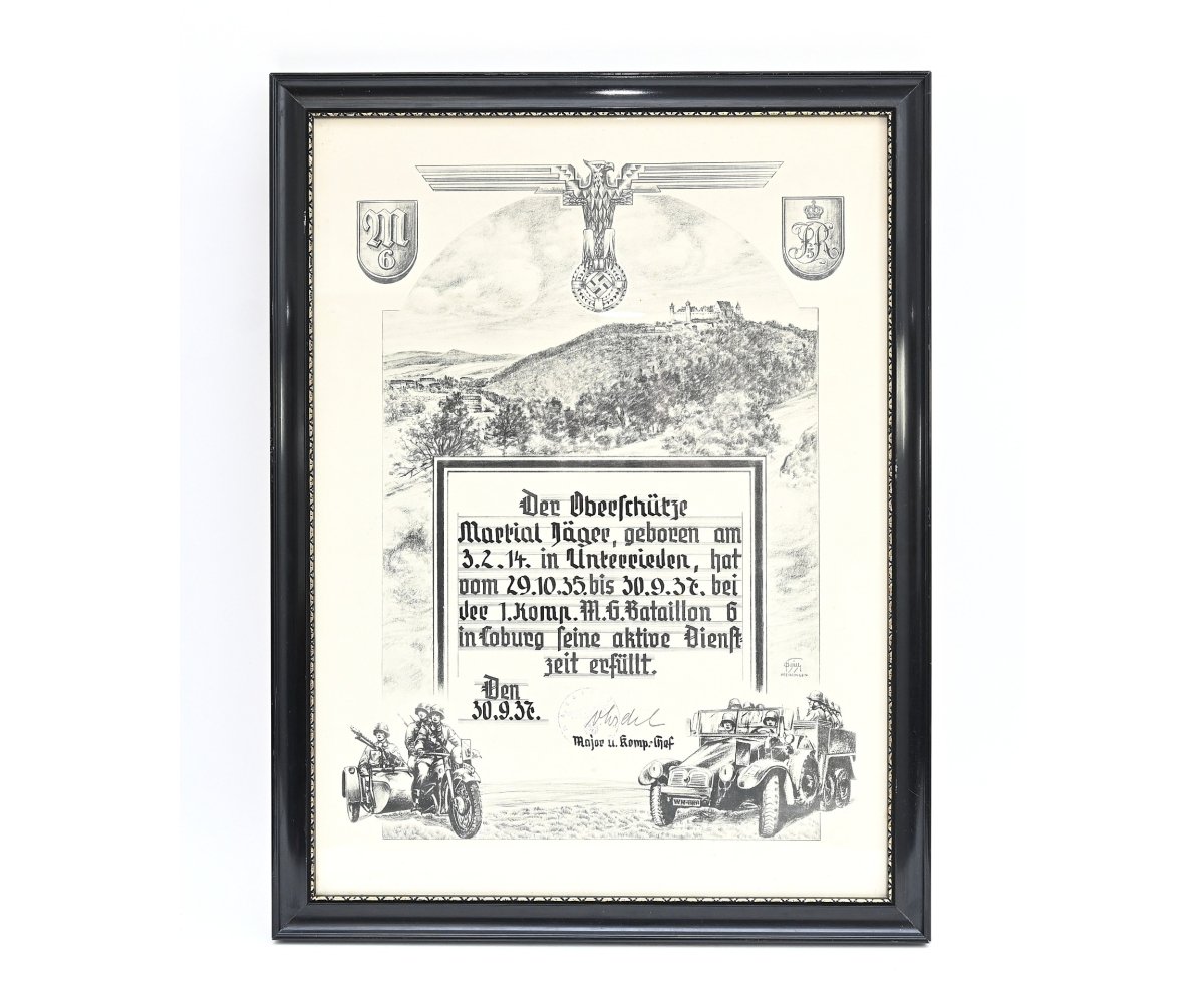 Framed M.G.Btl.6 Aktive Dienstzeit Document (large)