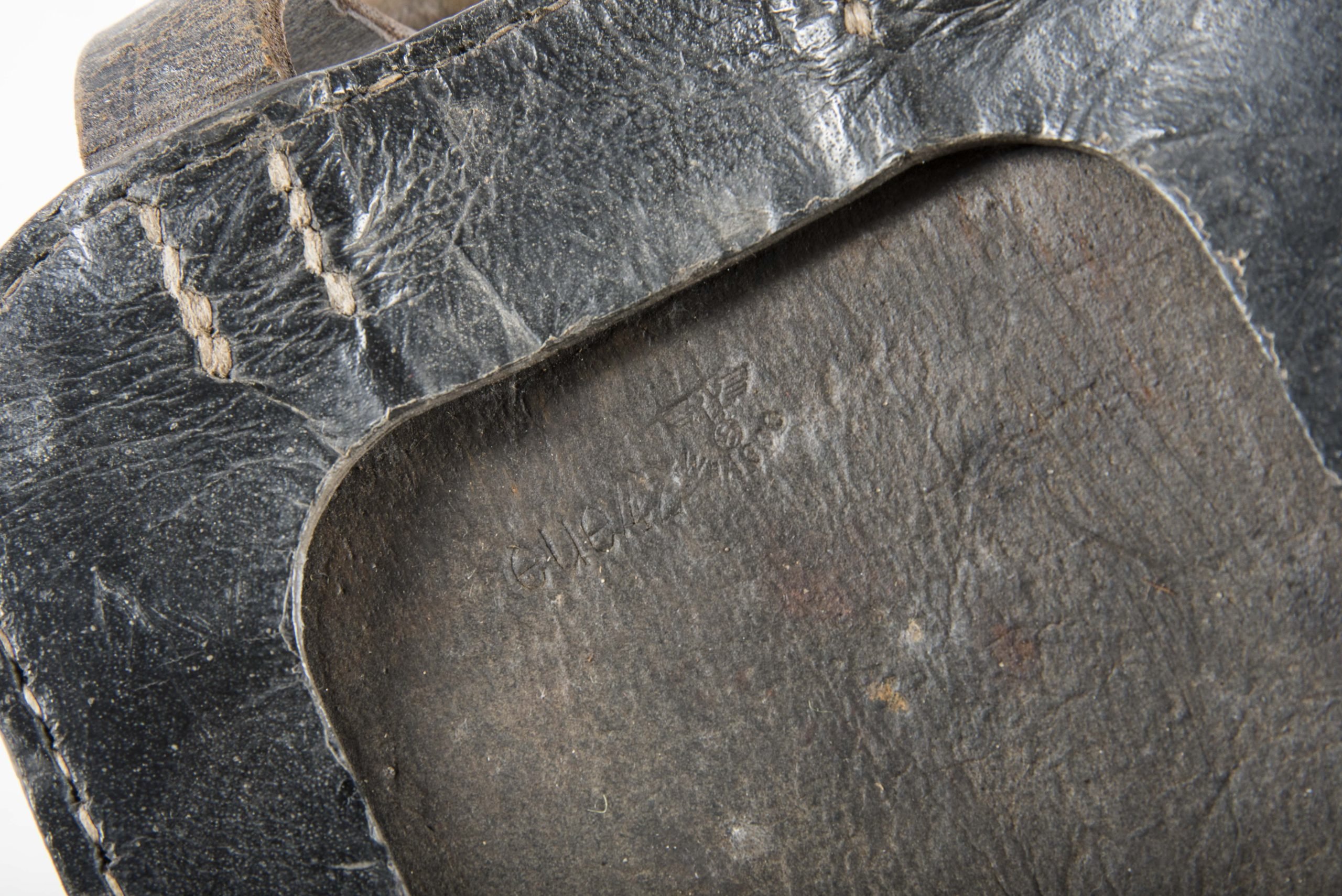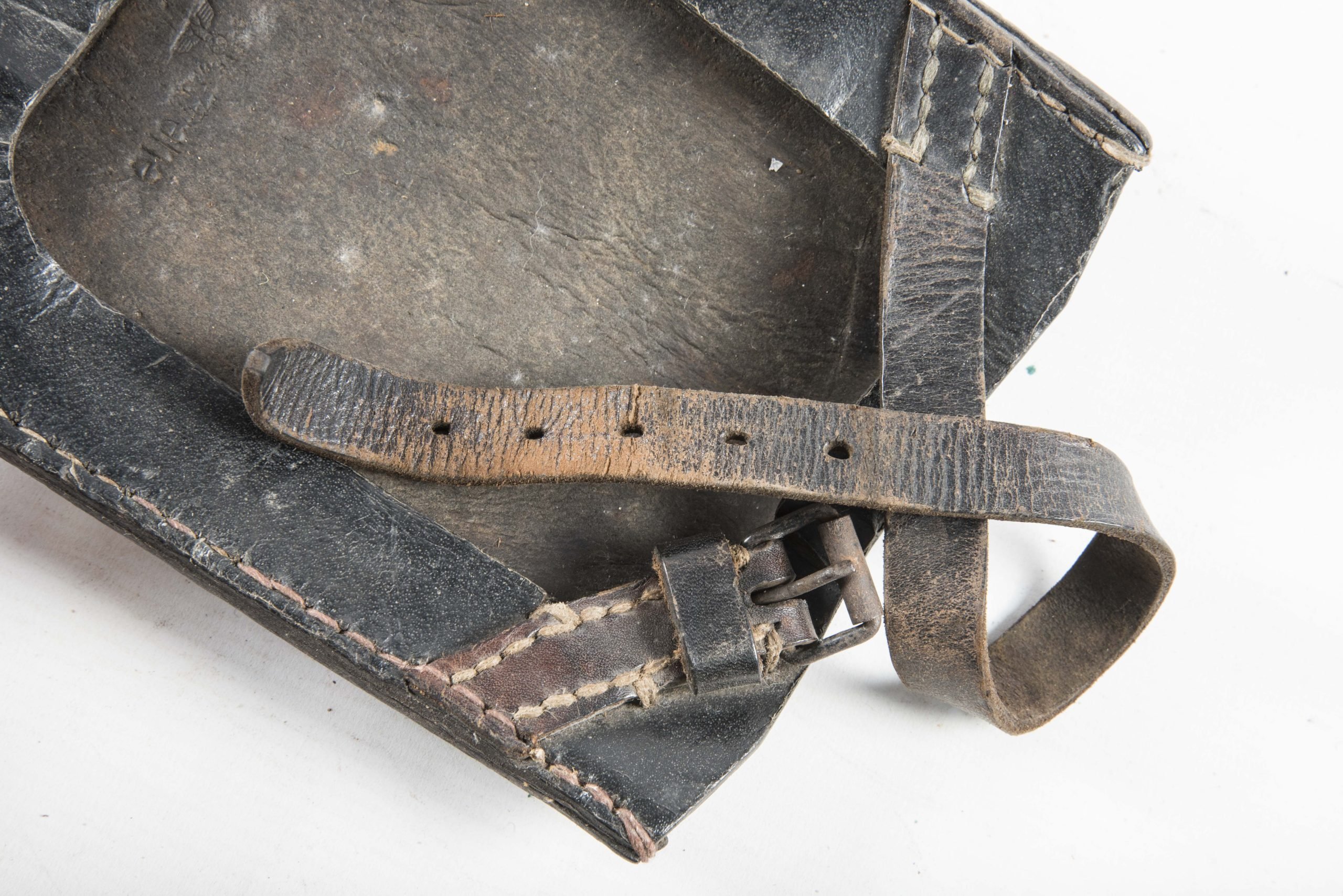 Straight E-tool dated 1944 with carrier marked EUE/42 in good used condition. The carrier is marked EUE/42 indicating production byOtto Reichel, Jnh. Rudolf Fischer, Lederwarenfabrik, Lengefeld/Erzgebirgte.The E-tool itself is dated 1944. A nice set in good condition!