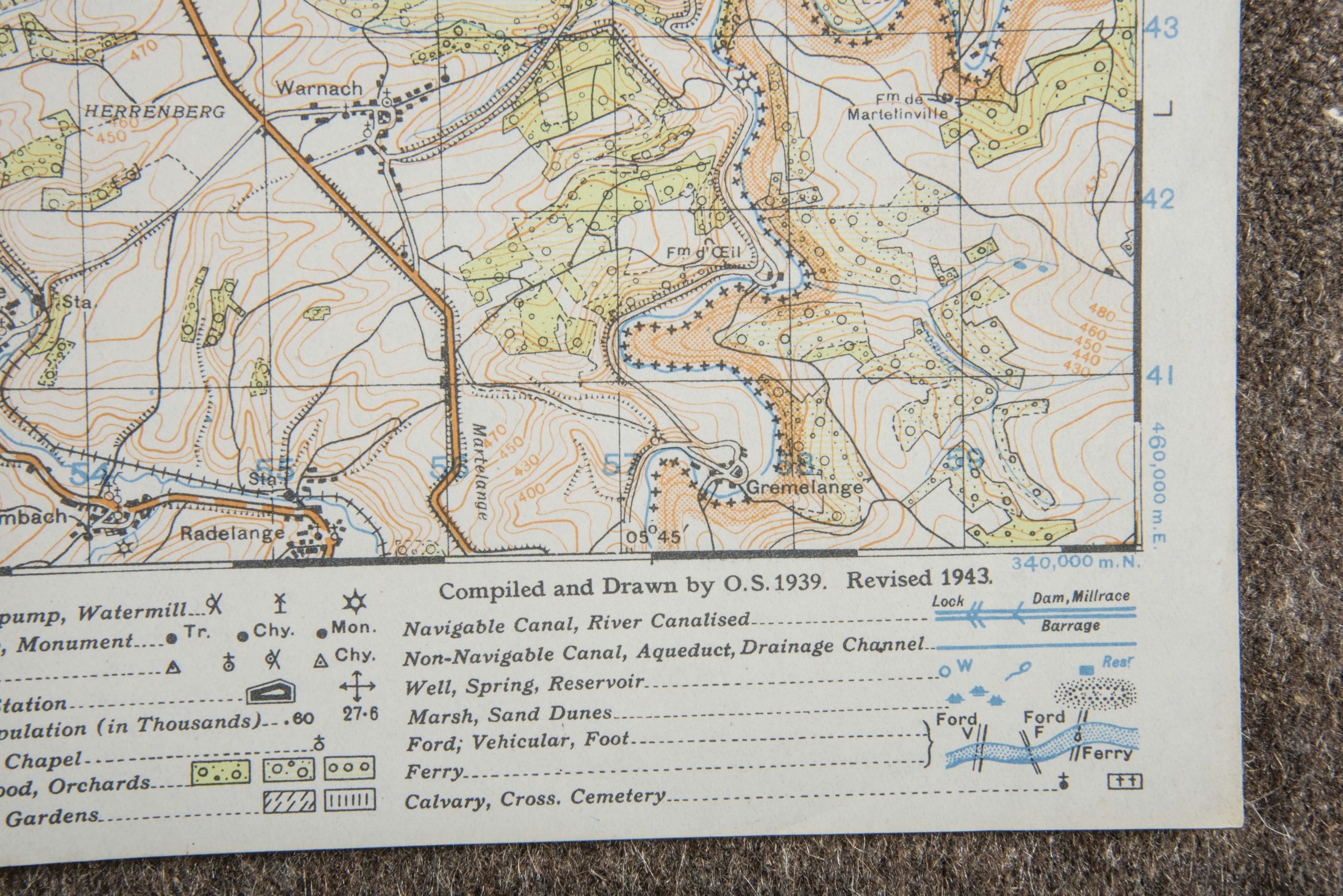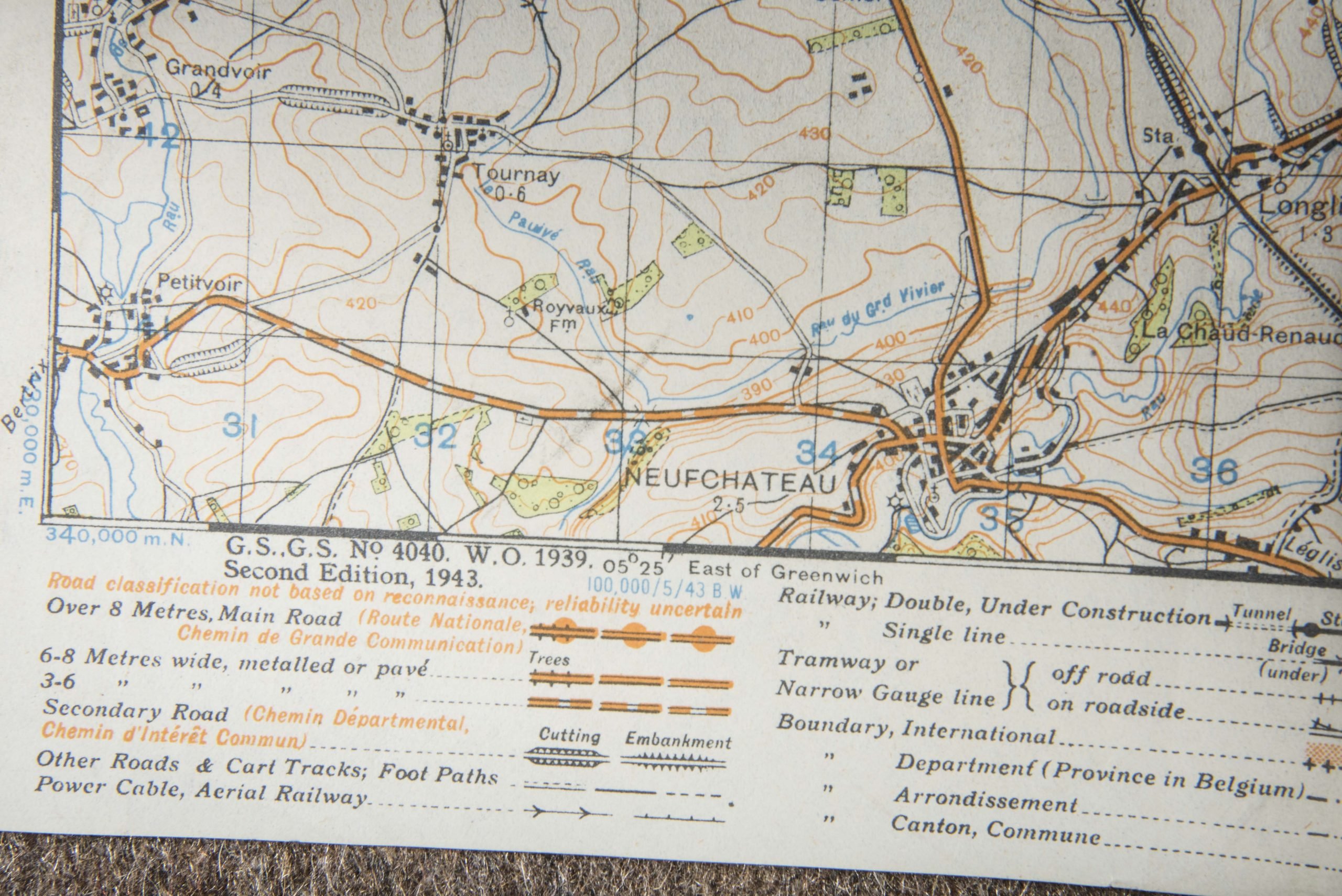 Ardennes map 1:50.000 1943 โ Bastogne, Sibret, Neufchateau, Wardin in good condition. Probably one of the most sought after Ardennes maps!