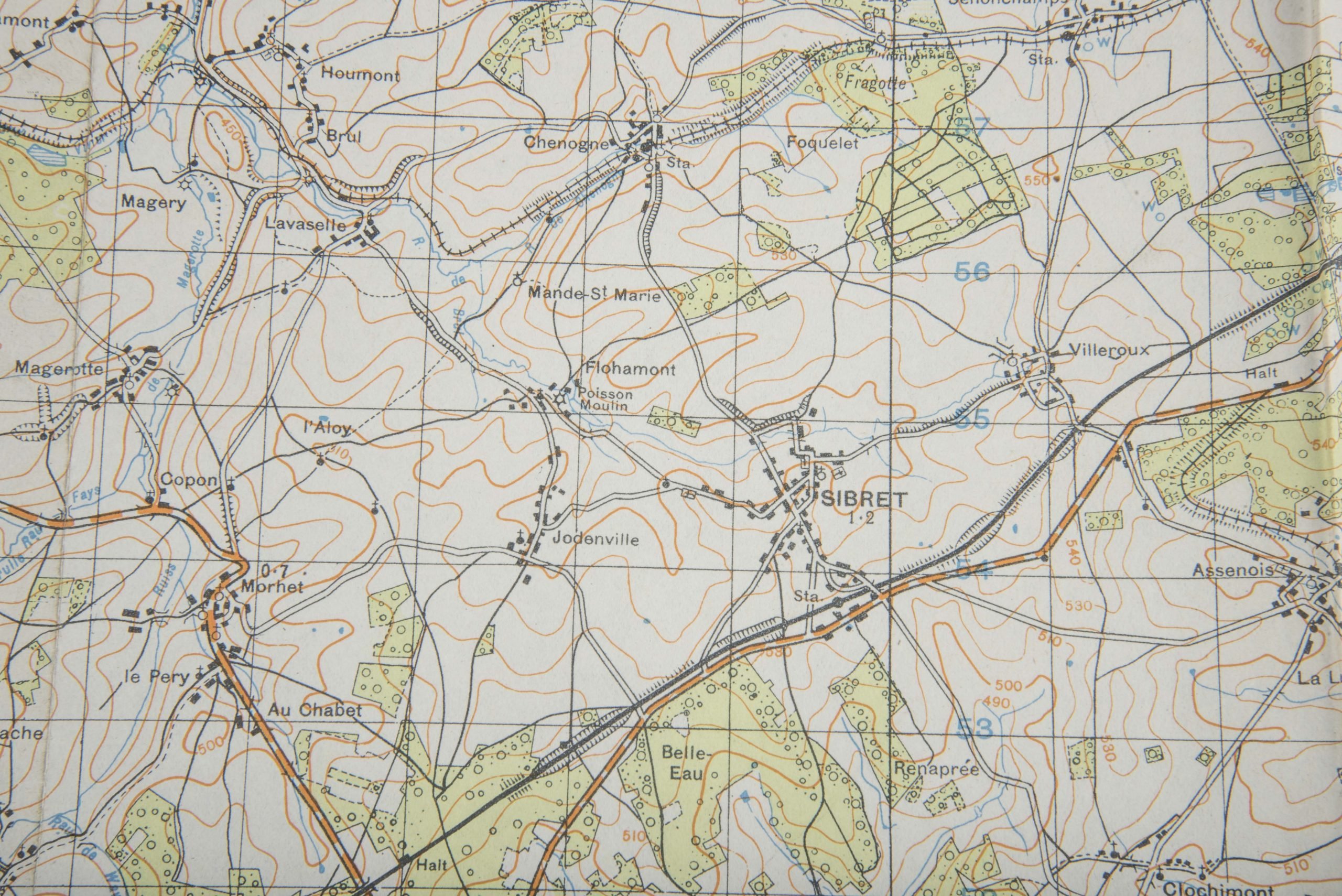 Ardennes map 1:50.000 1943 โ Bastogne, Sibret, Neufchateau, Wardin, Assenois