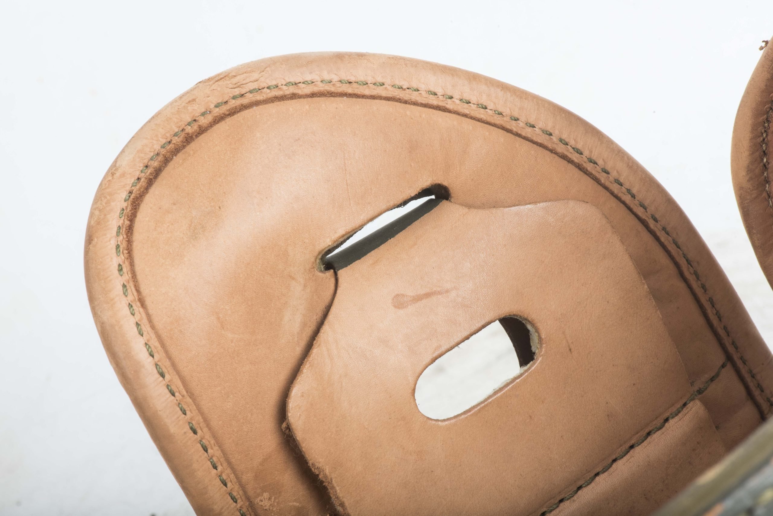M38 Wilson Ath. Goods Mfg. Co. tanker helmet in the large size 7 3/8. The helmet is in very good, near mint, unissued condition. There is a dent on the top, otherwise as new. Hard to find other then Rawlings!