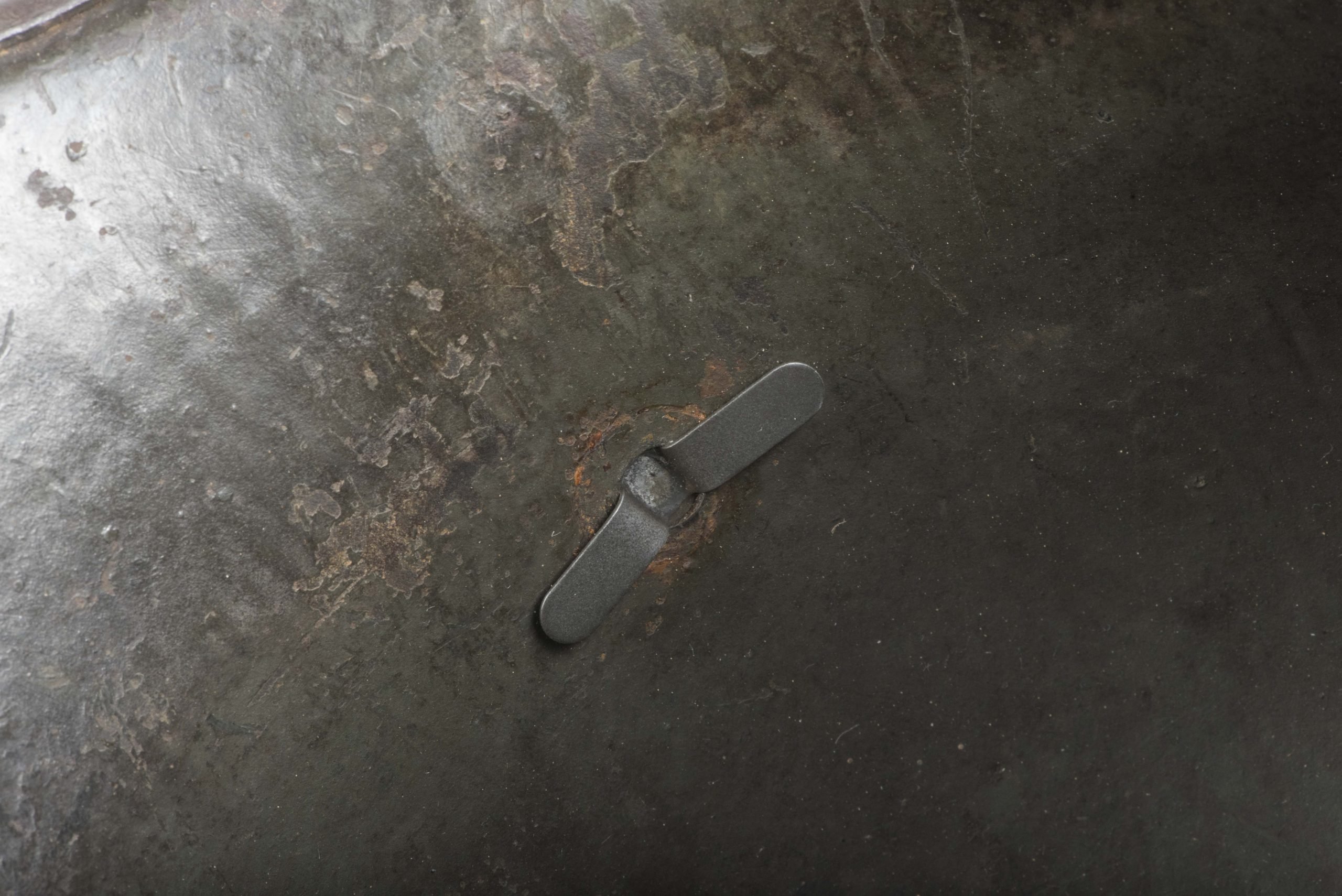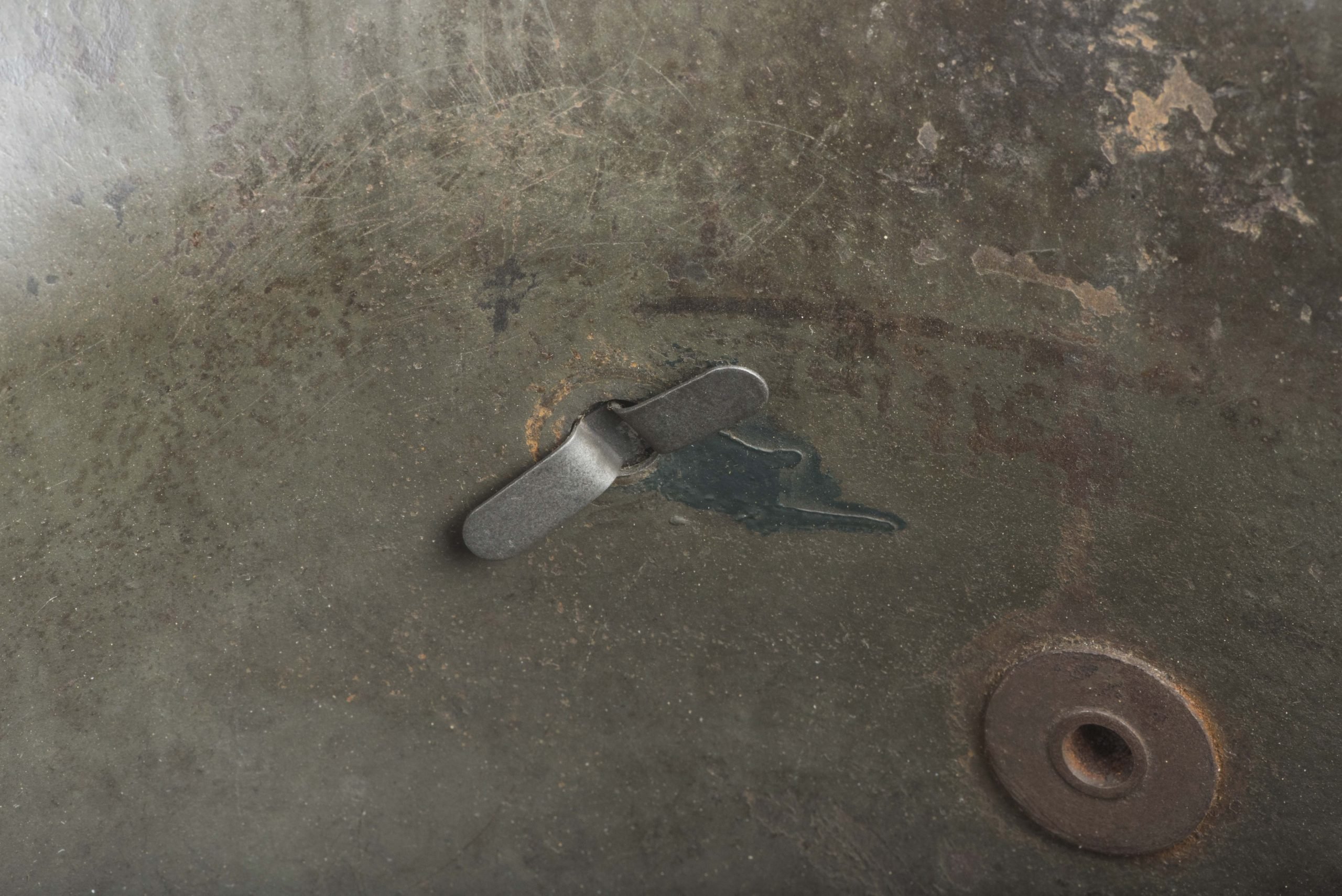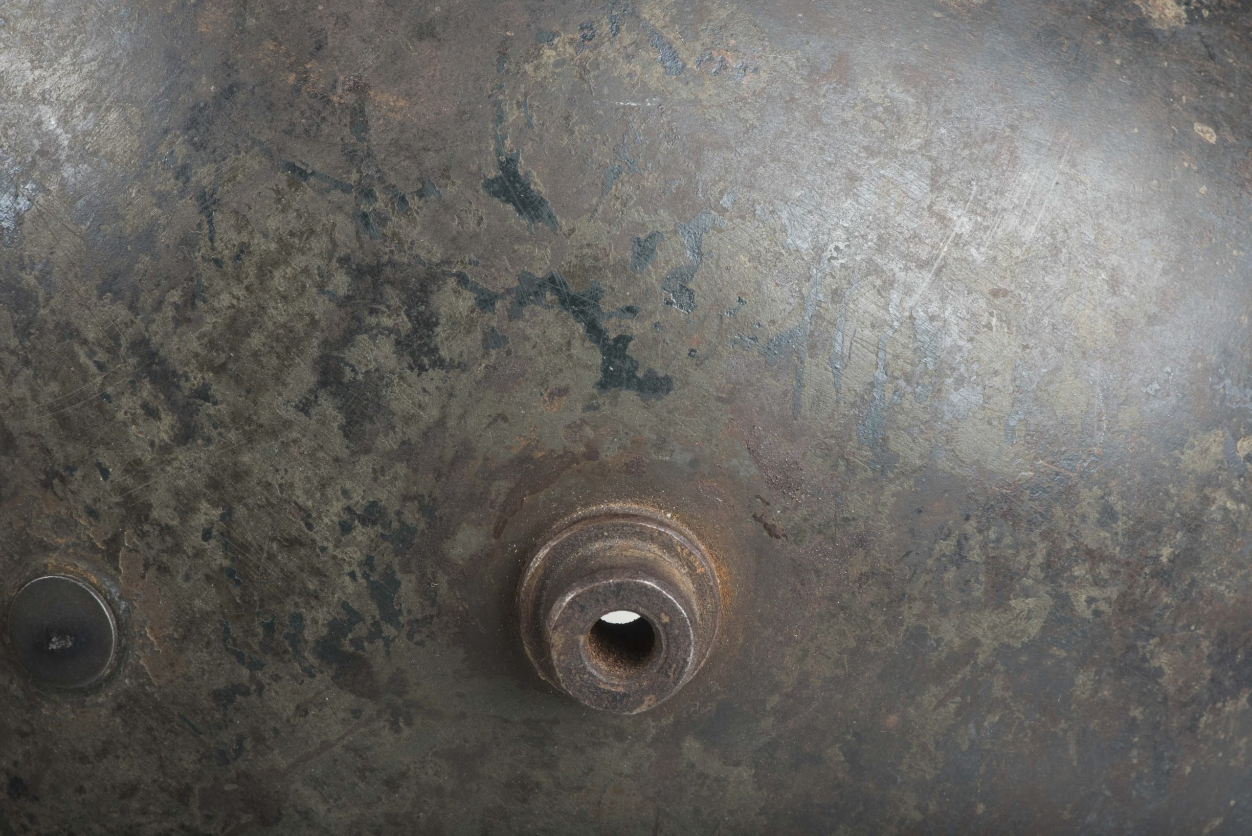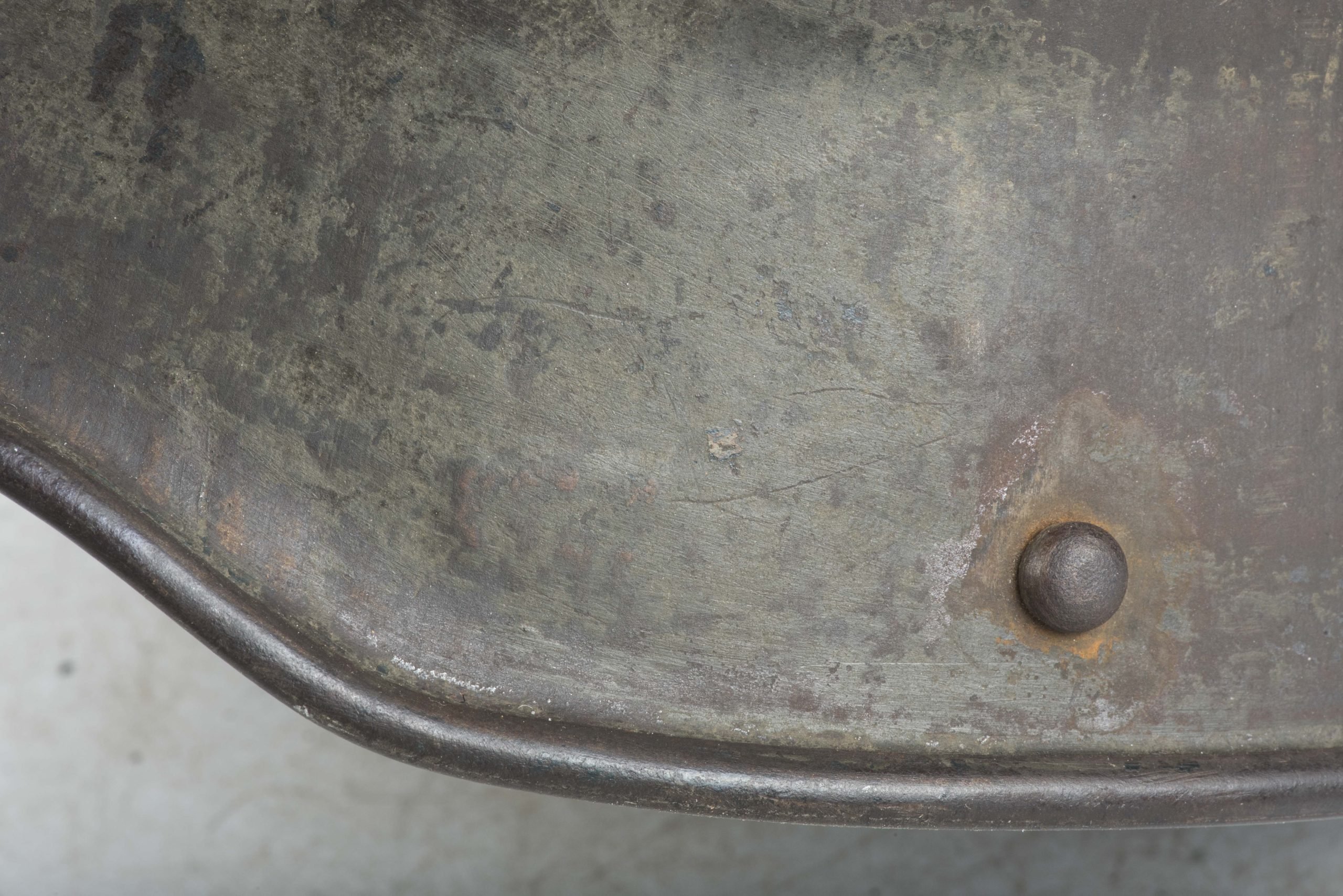 TJ66 Battledamaged Imperial M16 helmet in used condition. Complete with its rivets but without liner. Externally there are some signs of it being a camouflaged example. Beautiful as found example!