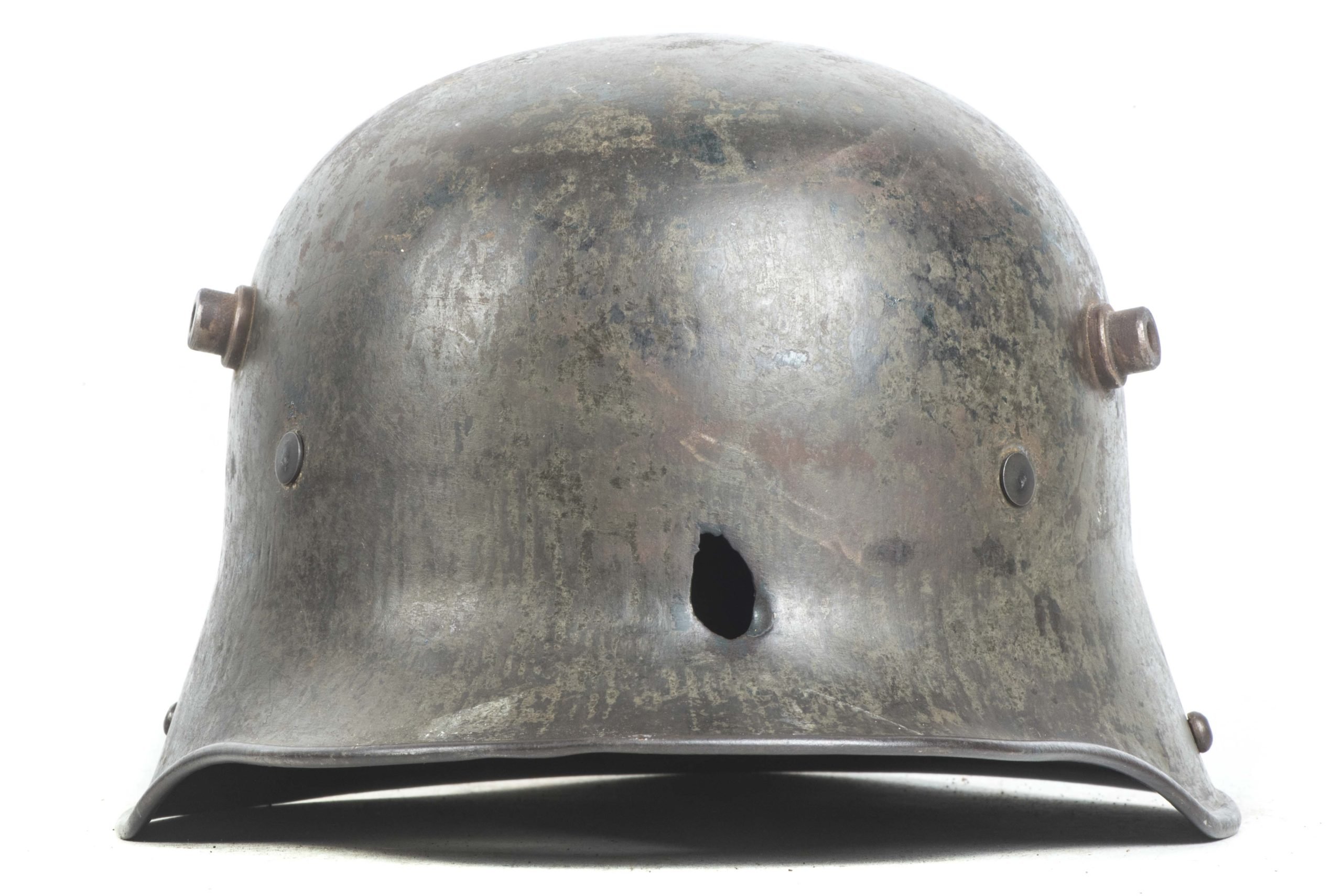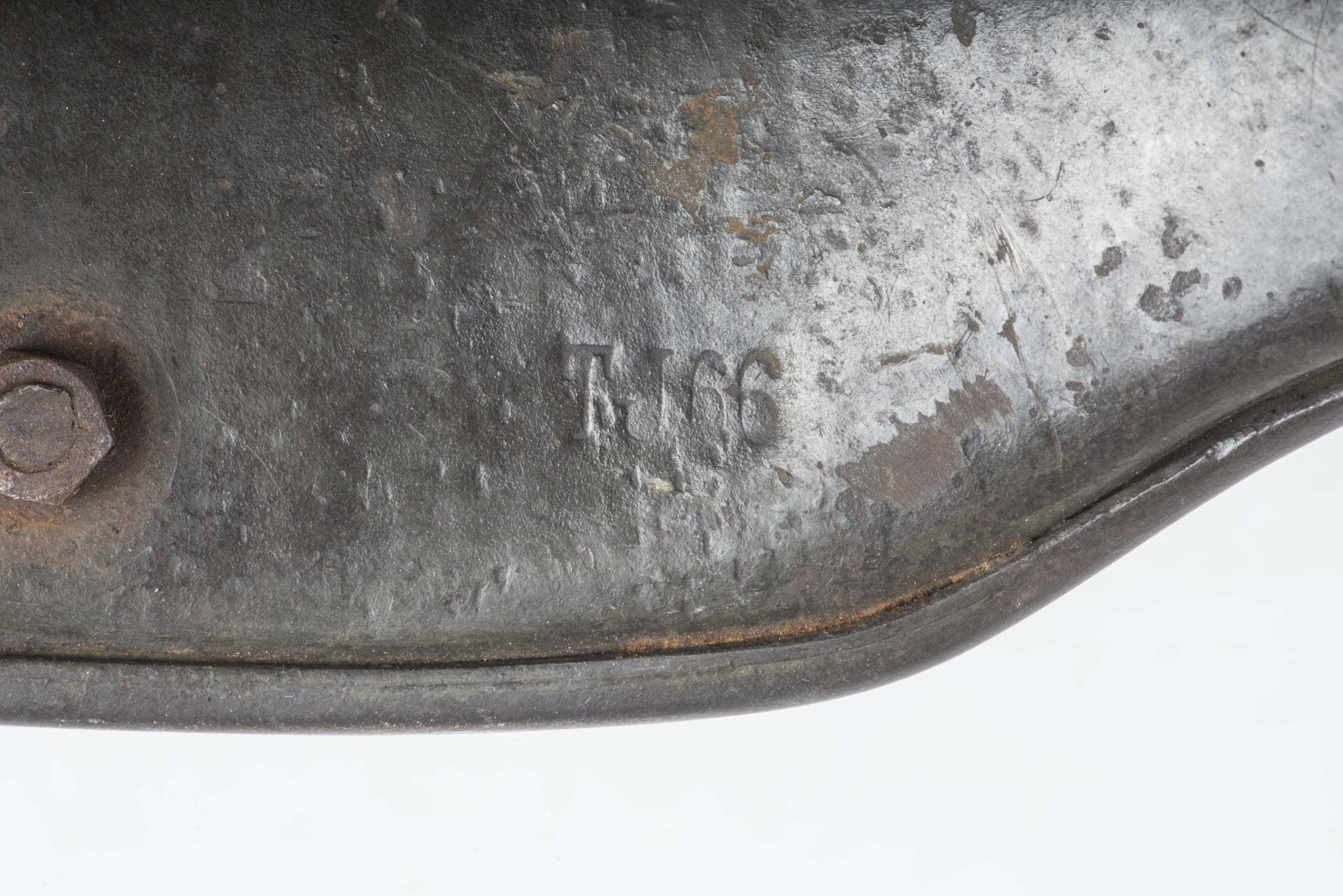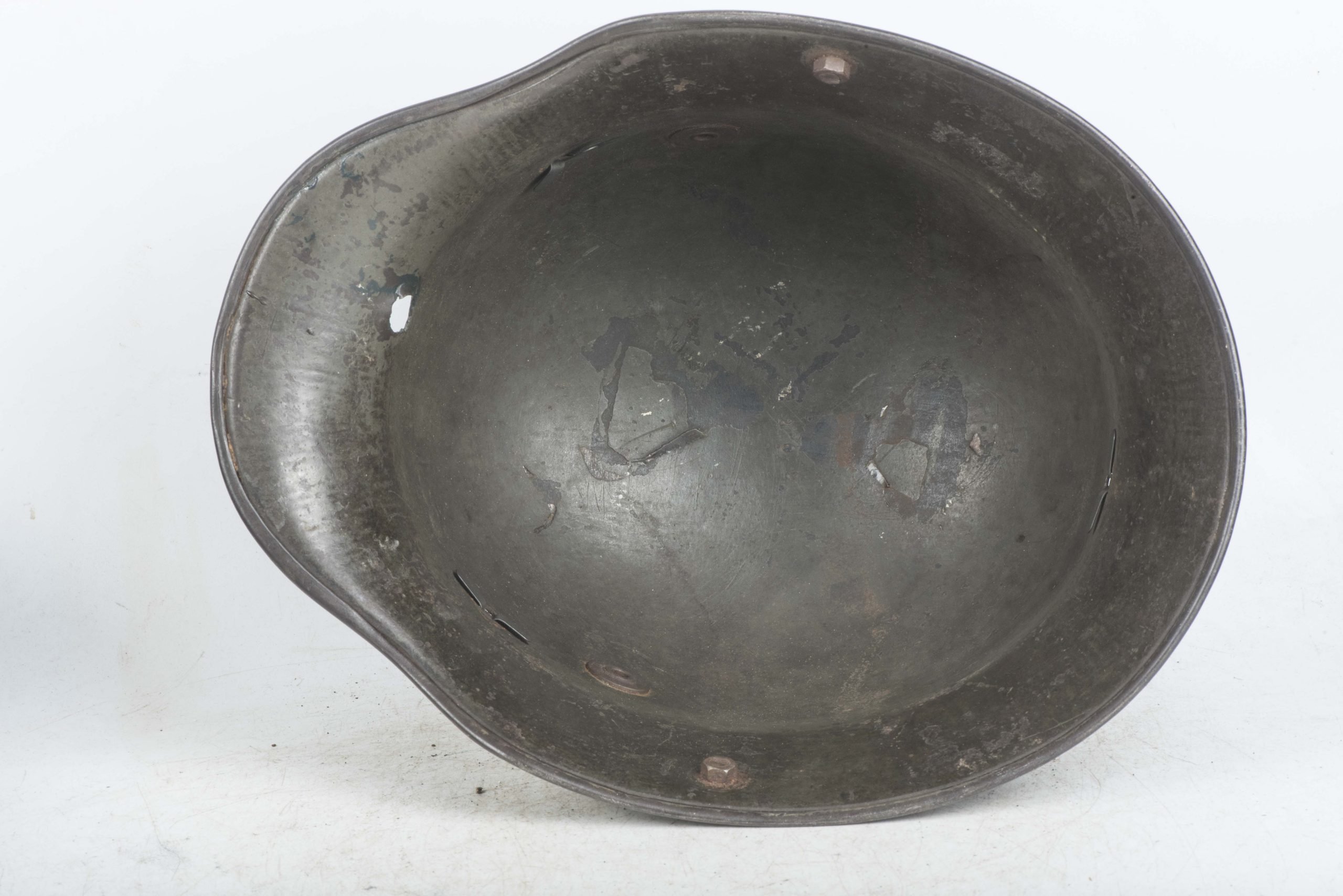 TJ66 Battledamaged Imperial M16 helmet in used condition. Complete with its rivets but without liner. Externally there are some signs of it being a camouflaged example. Beautiful as found example!