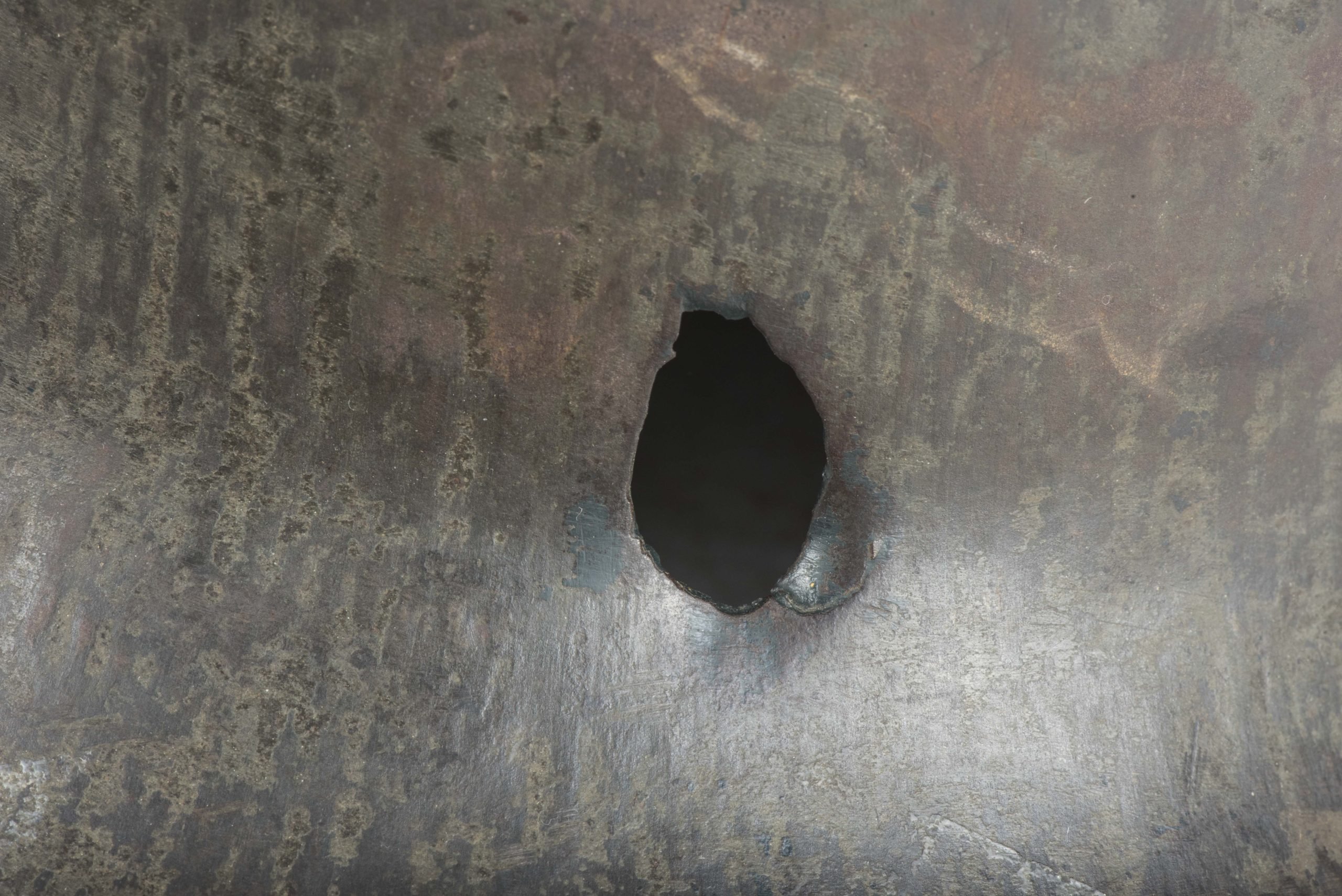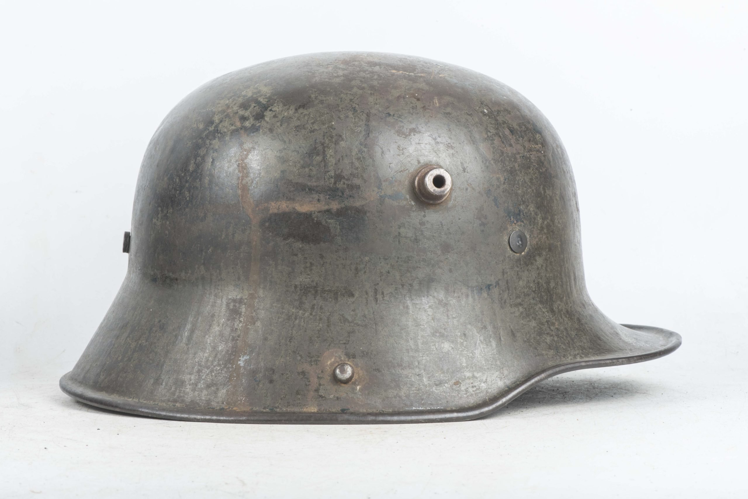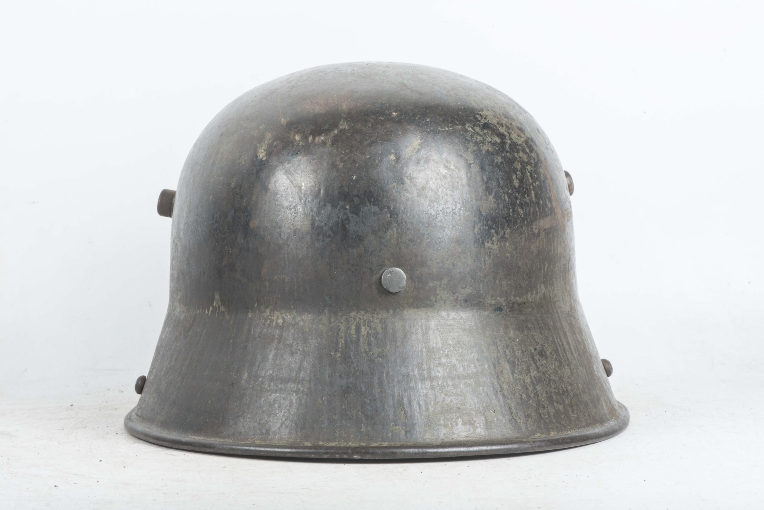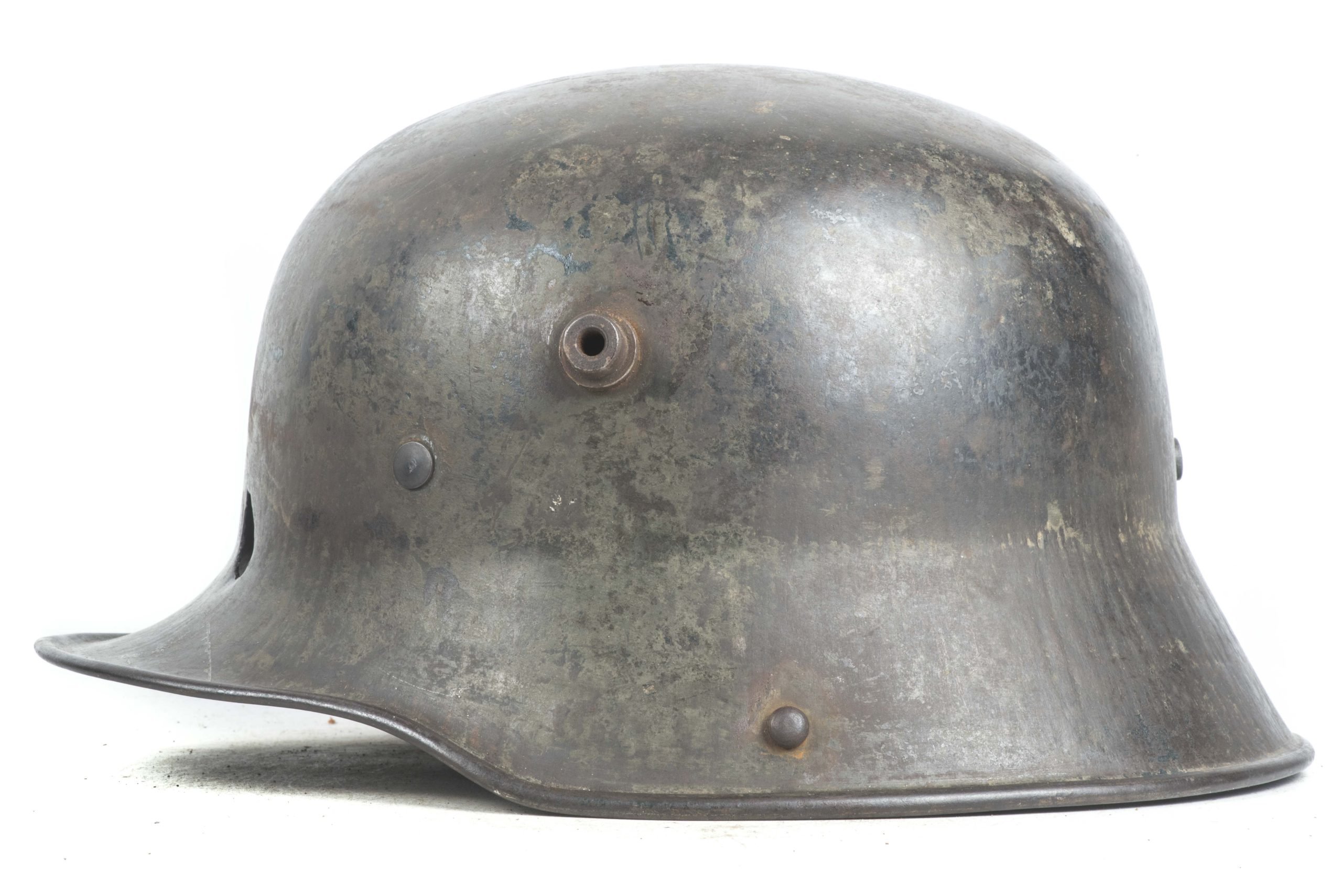 TJ66 Battledamaged Imperial M16 helmet in used condition. Complete with its rivets but without liner. Externally there are some signs of it being a camouflaged example. Beautiful as found example!