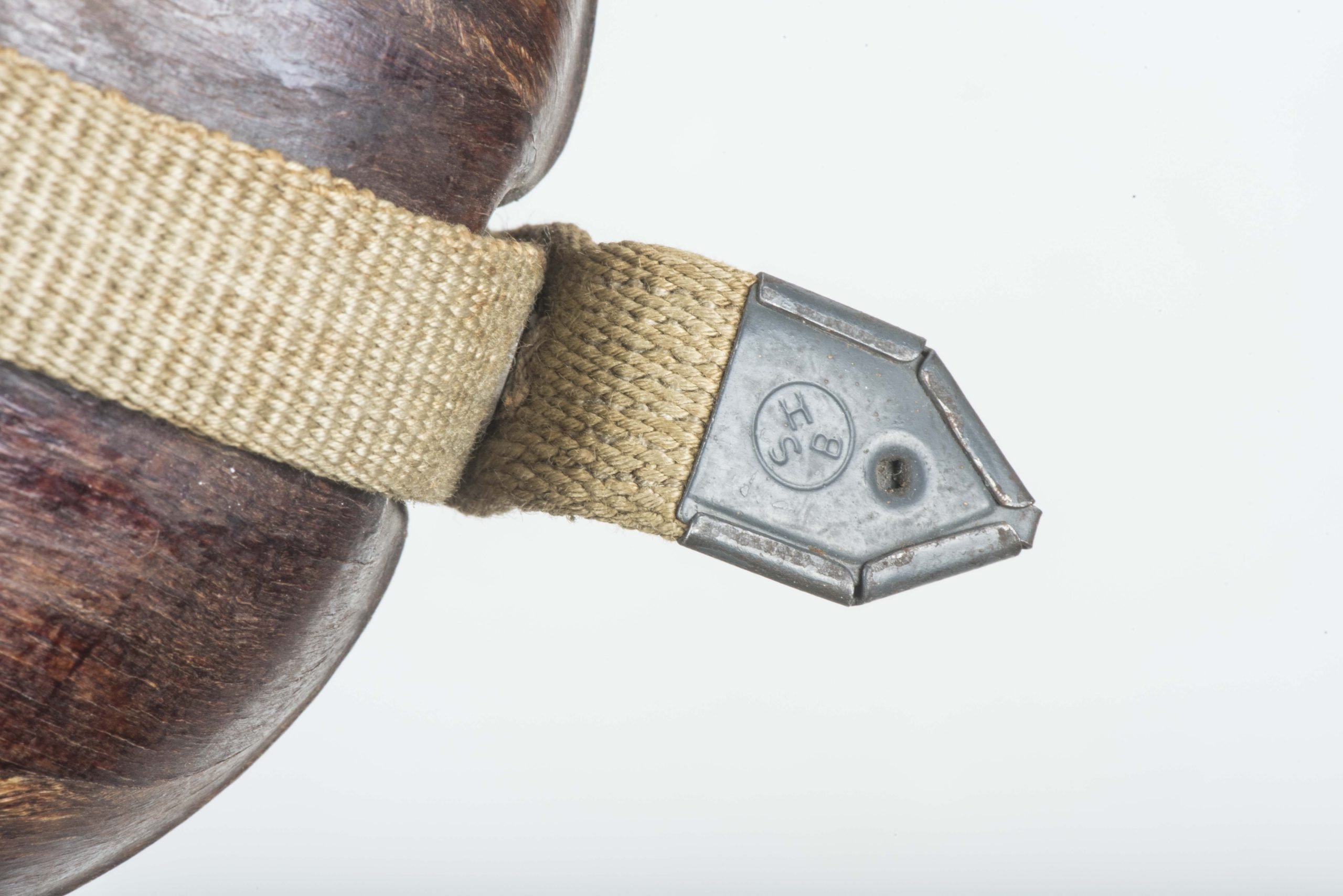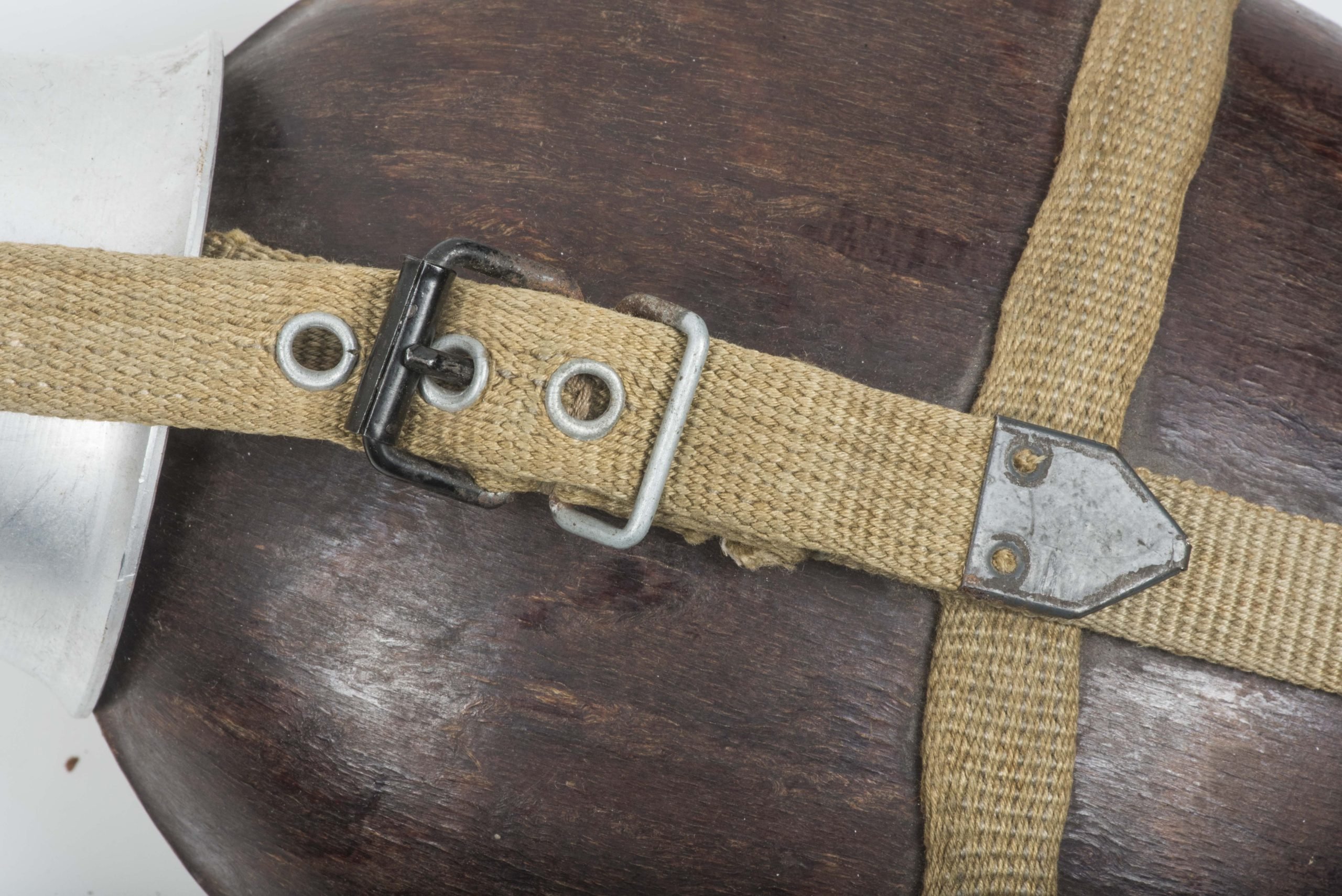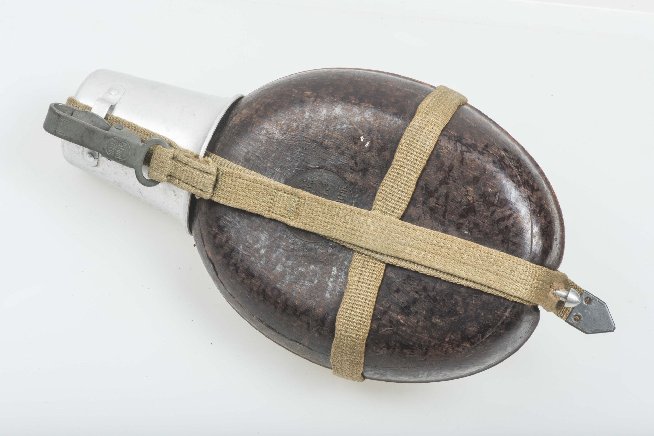 Late war coconut canteen marked HRE 43 with unpainted aluminium cup
