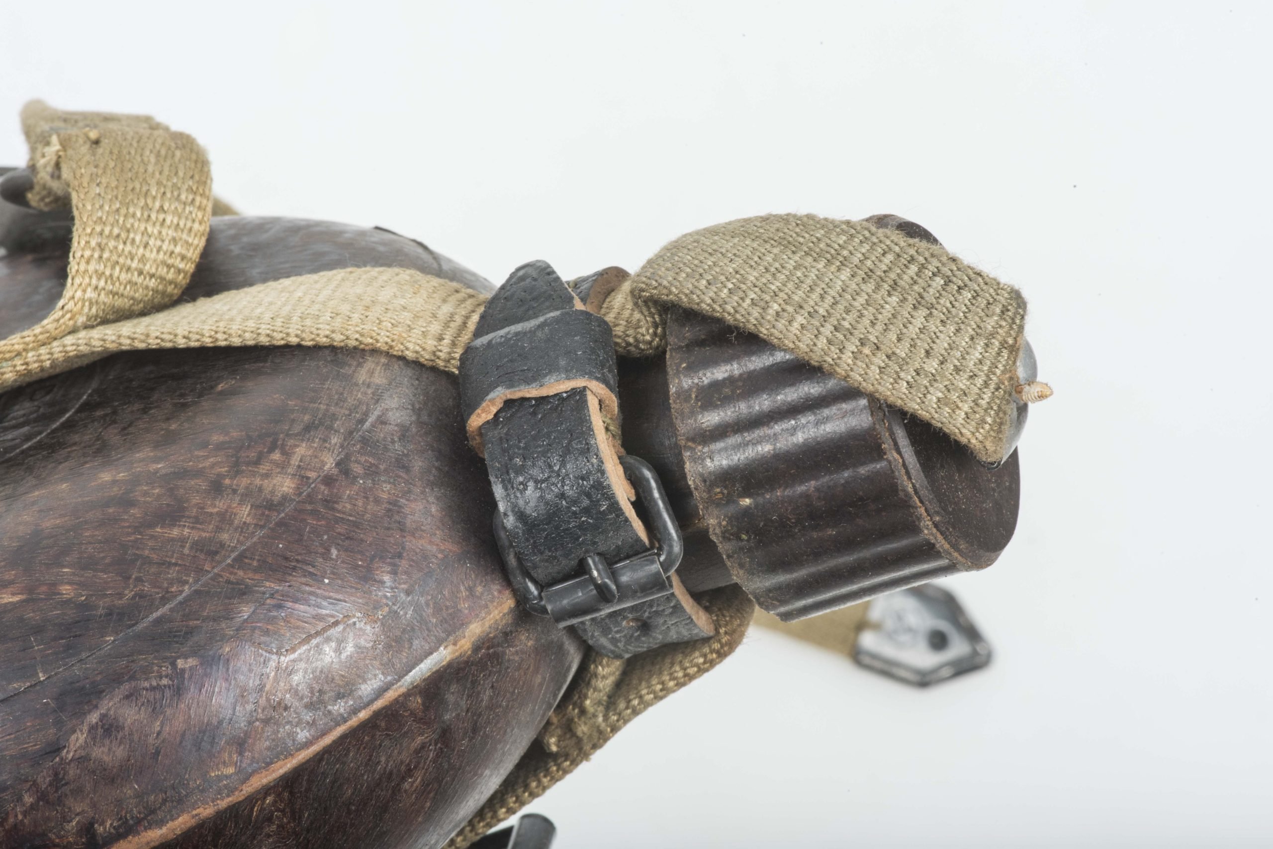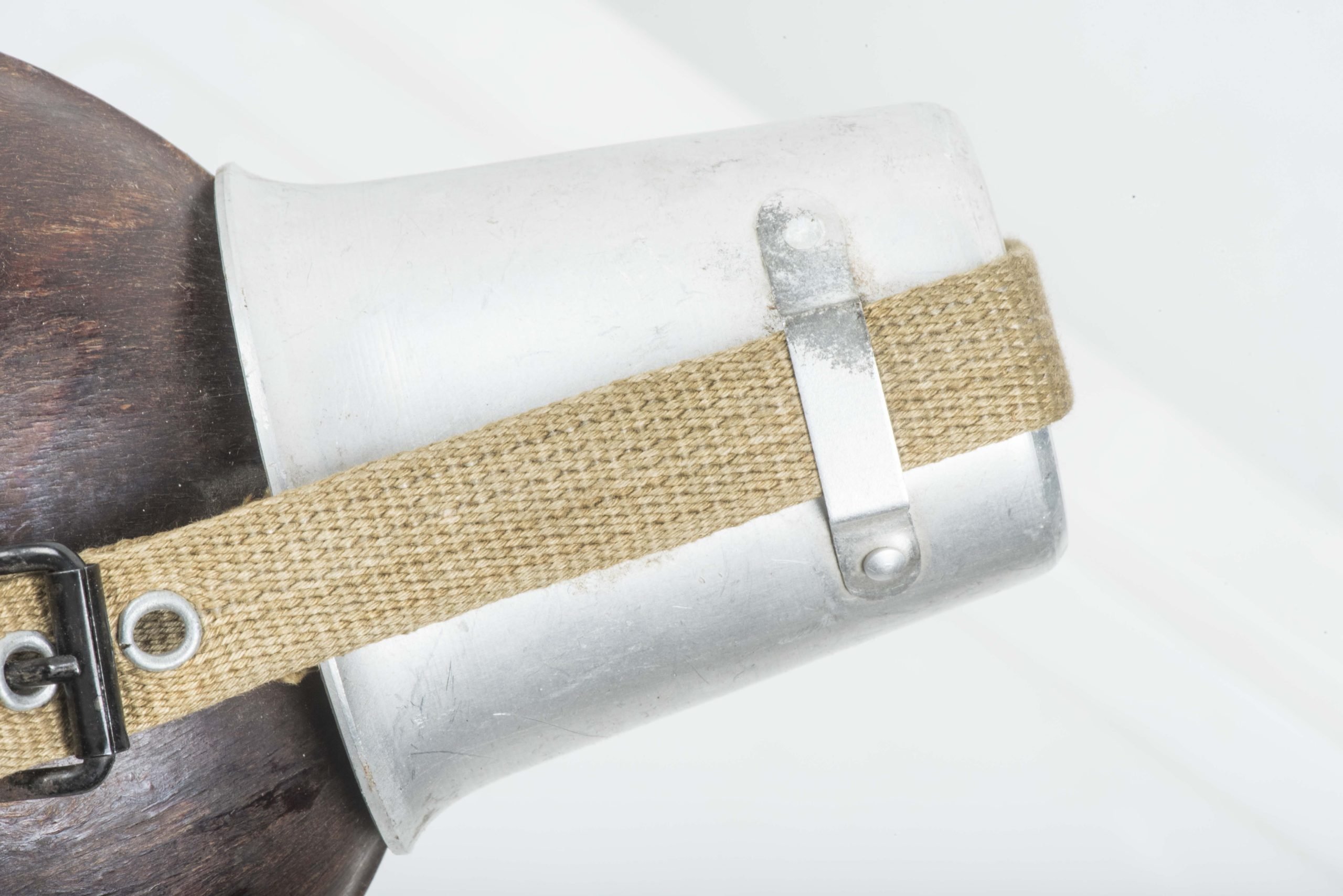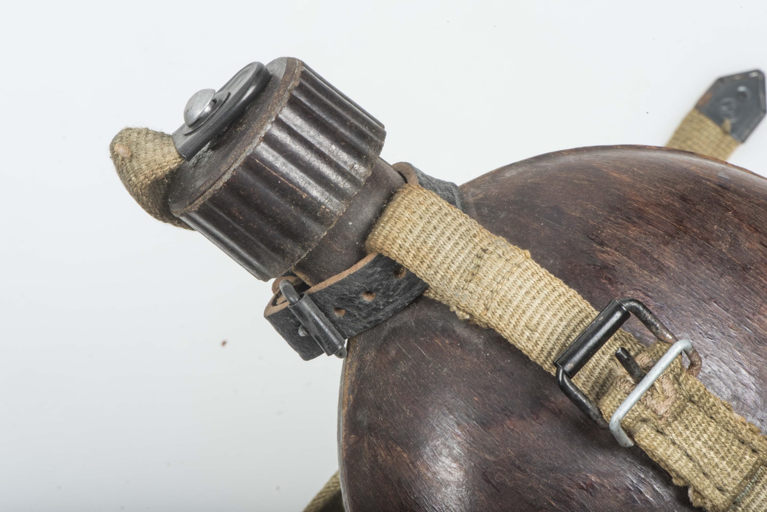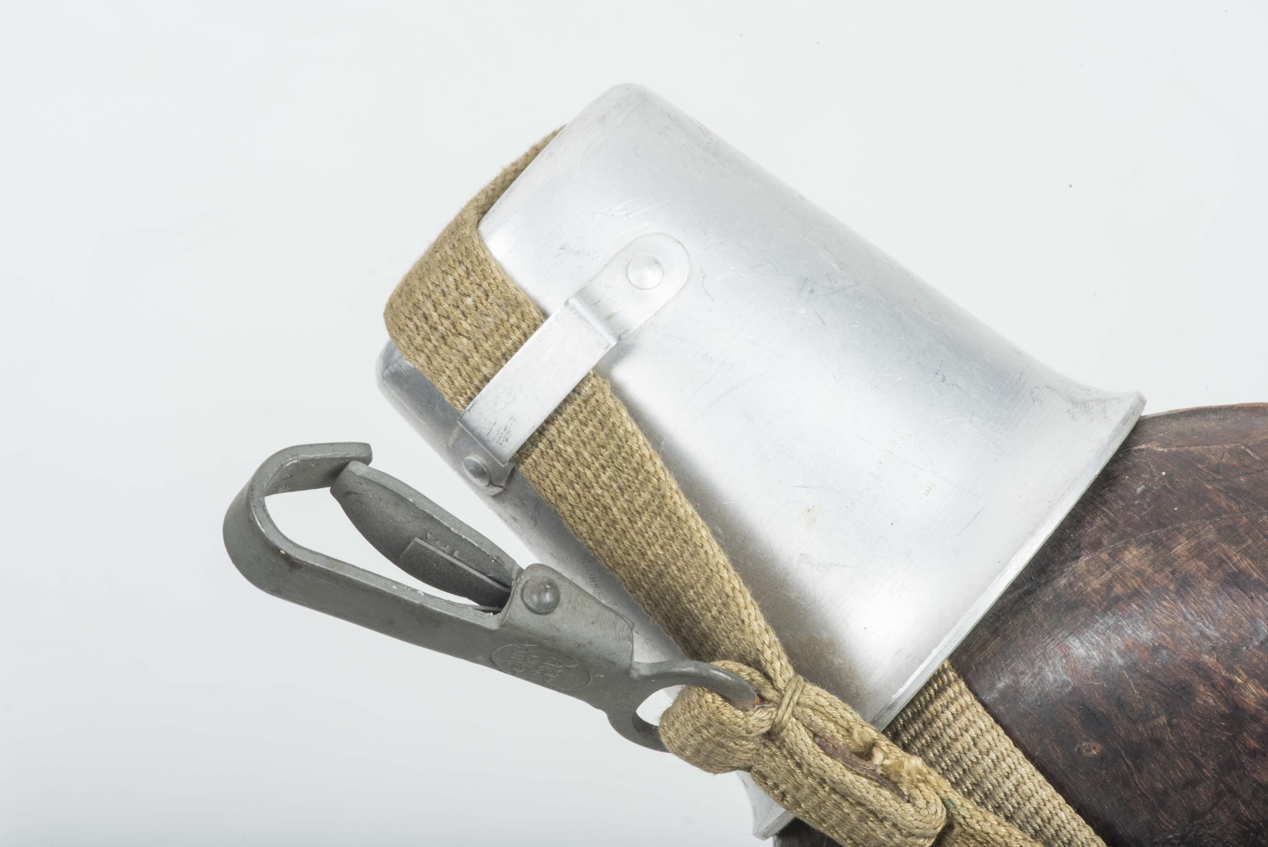 Late war coconut canteen marked HRE 43 with unpainted aluminium cup